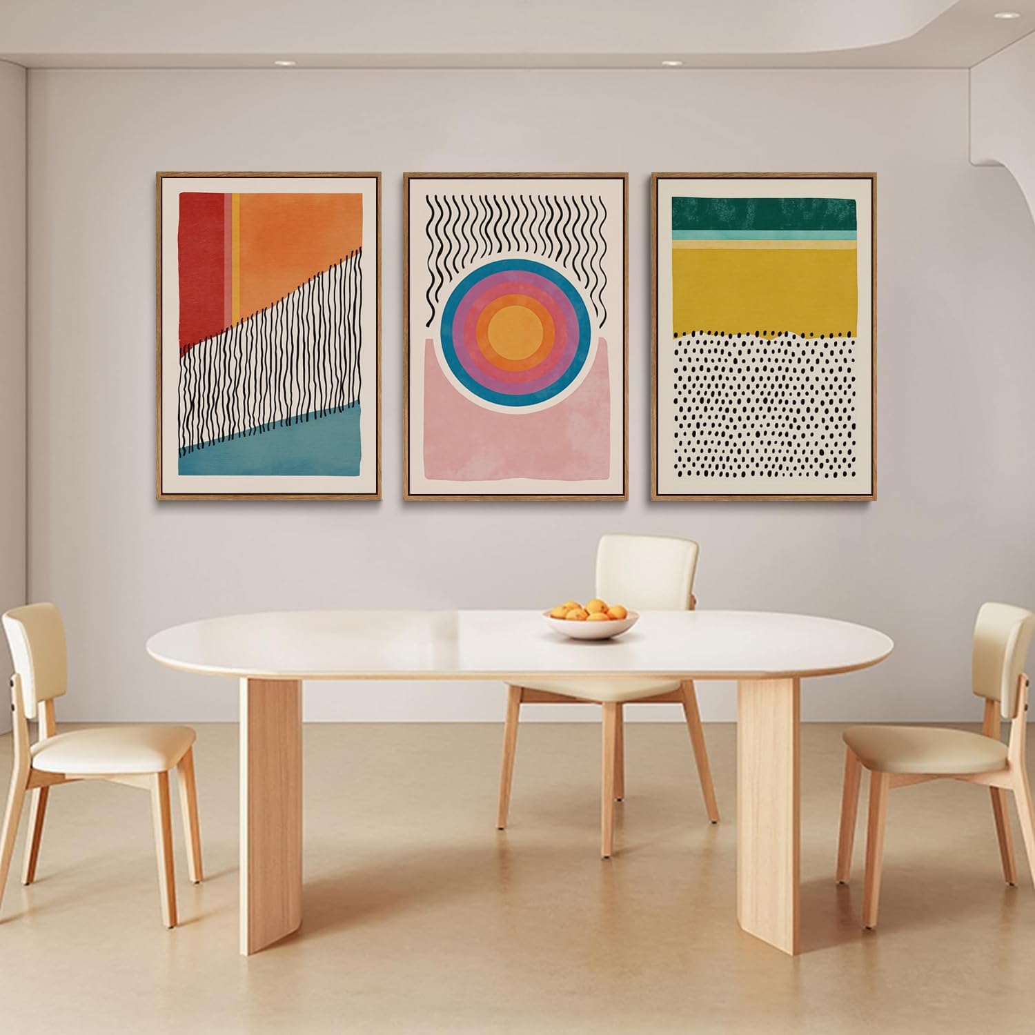 - Abstract Wall Art for Living Room: This set of three features stunning abstract canvas art, each encased in a stylish frame. The framing not only protects the canvas but also adds a touch of sophistication, making these pieces a perfect blend of artistry and durability.