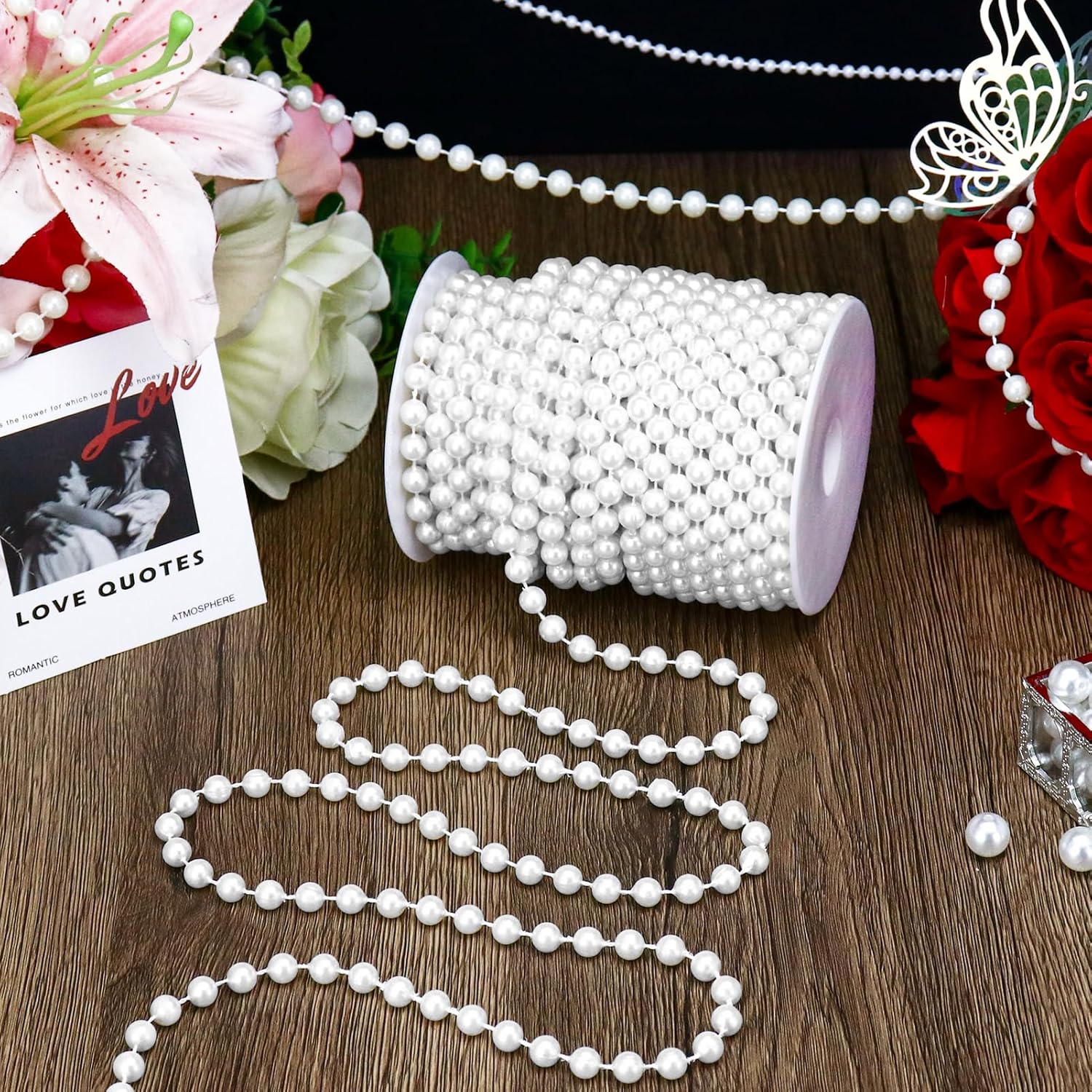 - You Will Receive a roll of faux pearl garland strings, totally 59 feet (18 meters) in length, the round pearl beads is 8mm in diameter