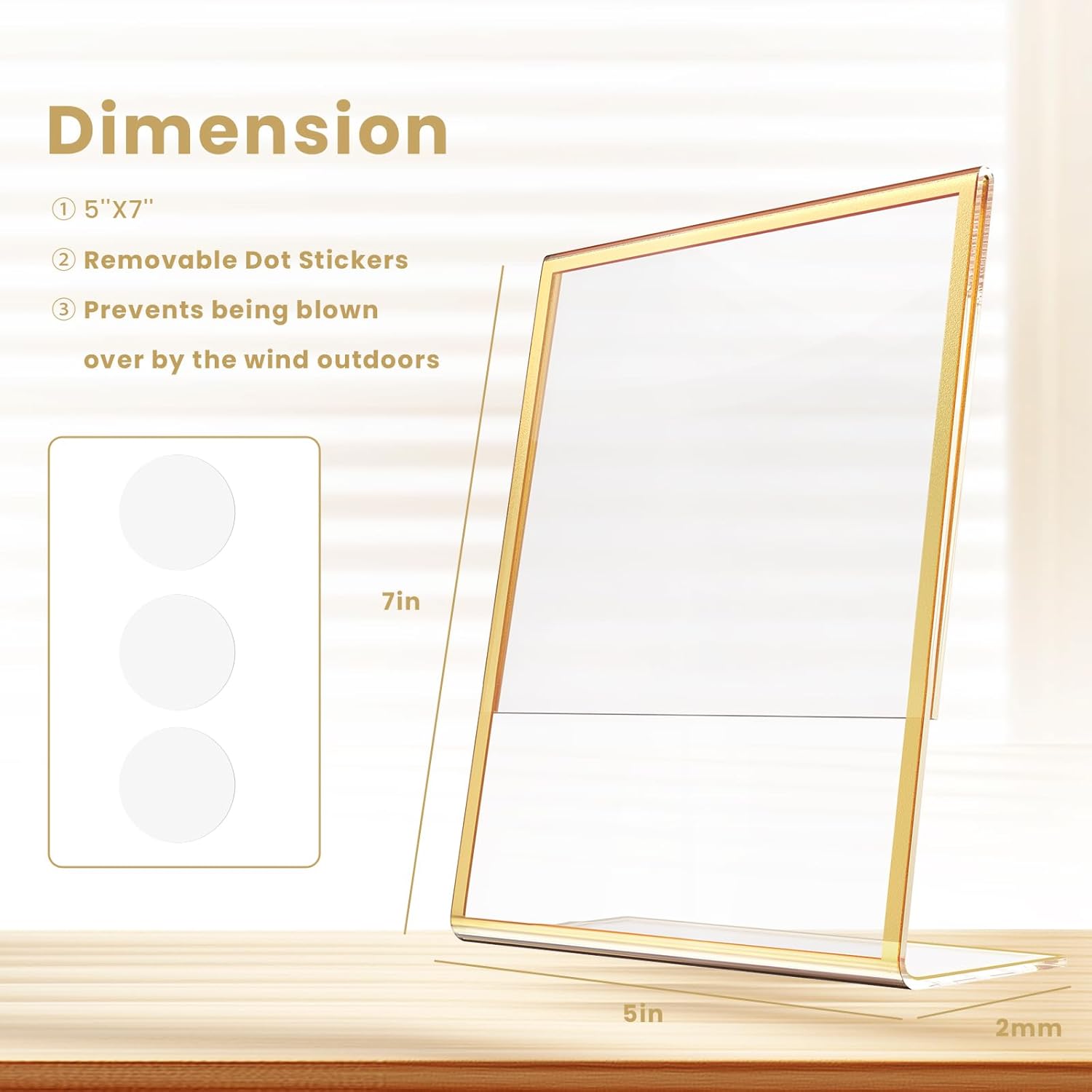 Acrylic Gold Frames 5 x7, Slanted Back Gold Picture Frames Table Acrylic Sign Holder for Photos Wedding Table Numbers and Art Display with Removable Clear Sticky Dots,3 Pack