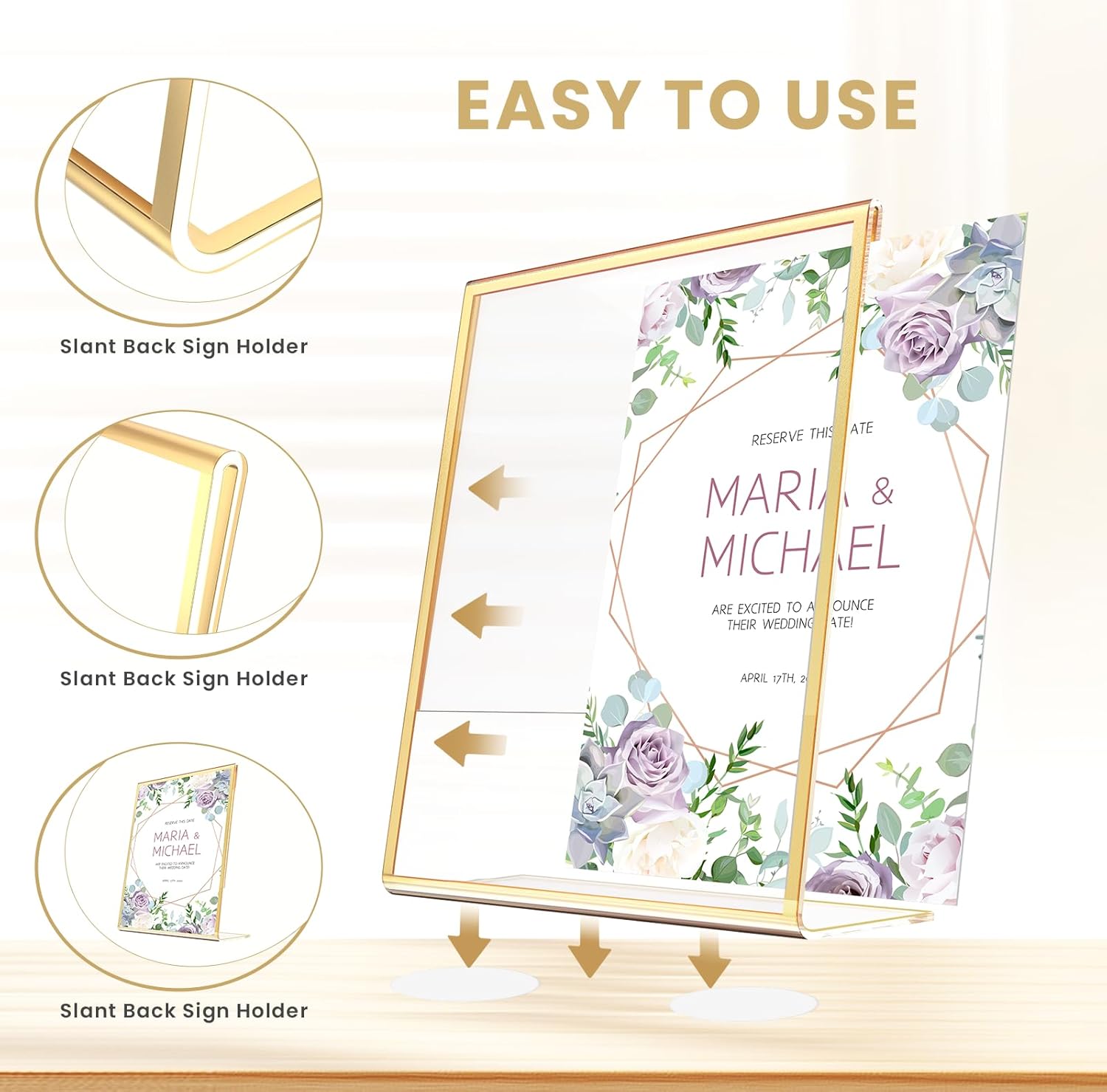 - 【Elegant Gold Frame】YOAEAILY guarantees 30 days money back and 1 year quality warranty, If any questions about our slant back acrylic sign holder, such as Receiving broken sign holder,please feel free to contact us