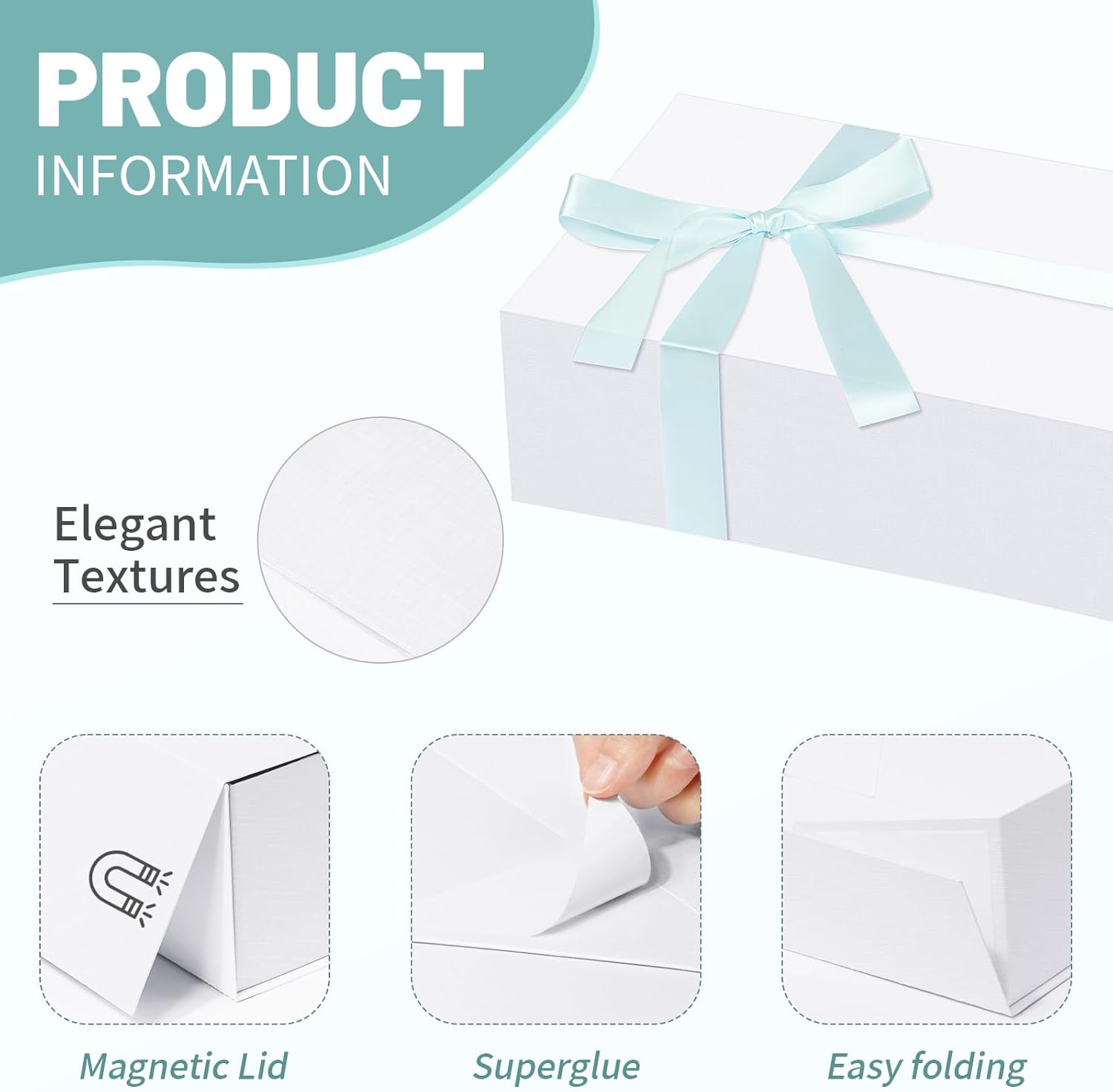 - FRIENDLY DESIGN: This white gift box has a sturdy magnetic closure that can be easily opened and closed again and again. The surface of the box is printed with special texture and elegant shape.