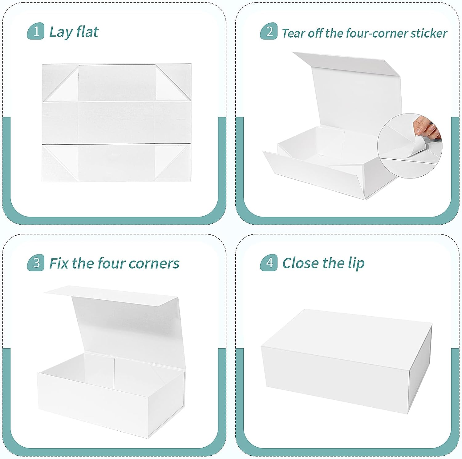 - EASY TO ASSEMBLE: For easy transportation,the gift box is designed to be folded. Unpack the package,tear off the white triangle sticker,paste and assemble the box.