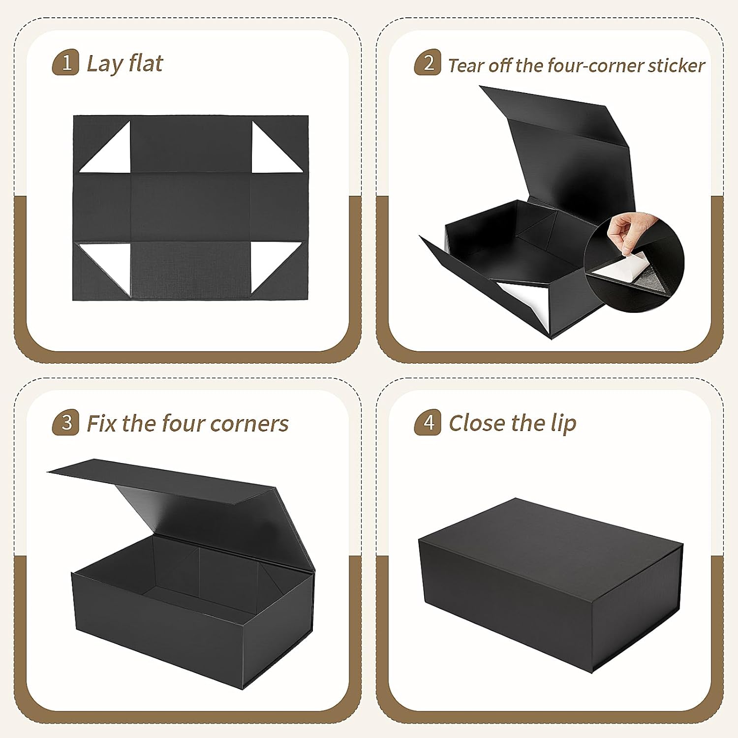 - EASY TO ASSEMBLE: For easy transportation,the gift box is designed to be folded. Unpack the package,tear off the white triangle sticker,paste and assemble the box.