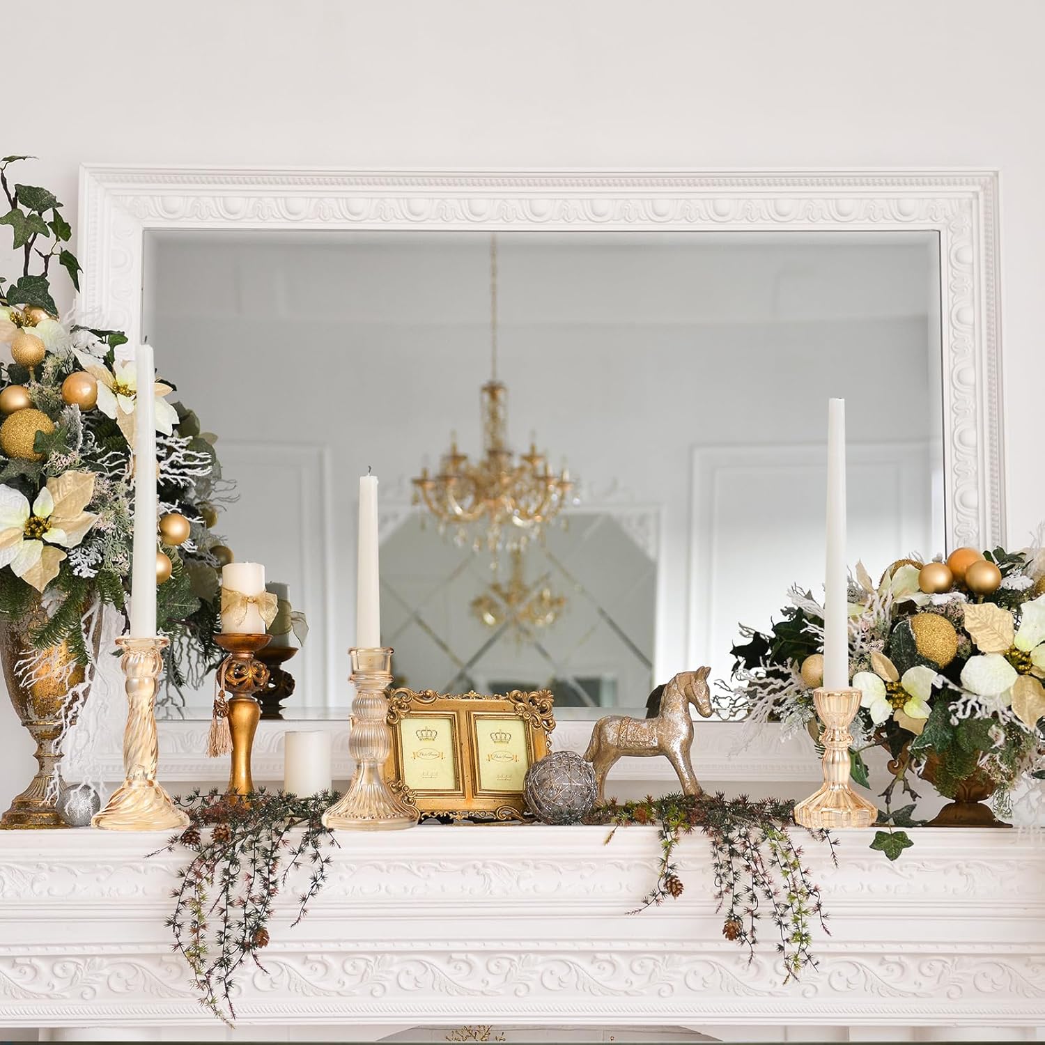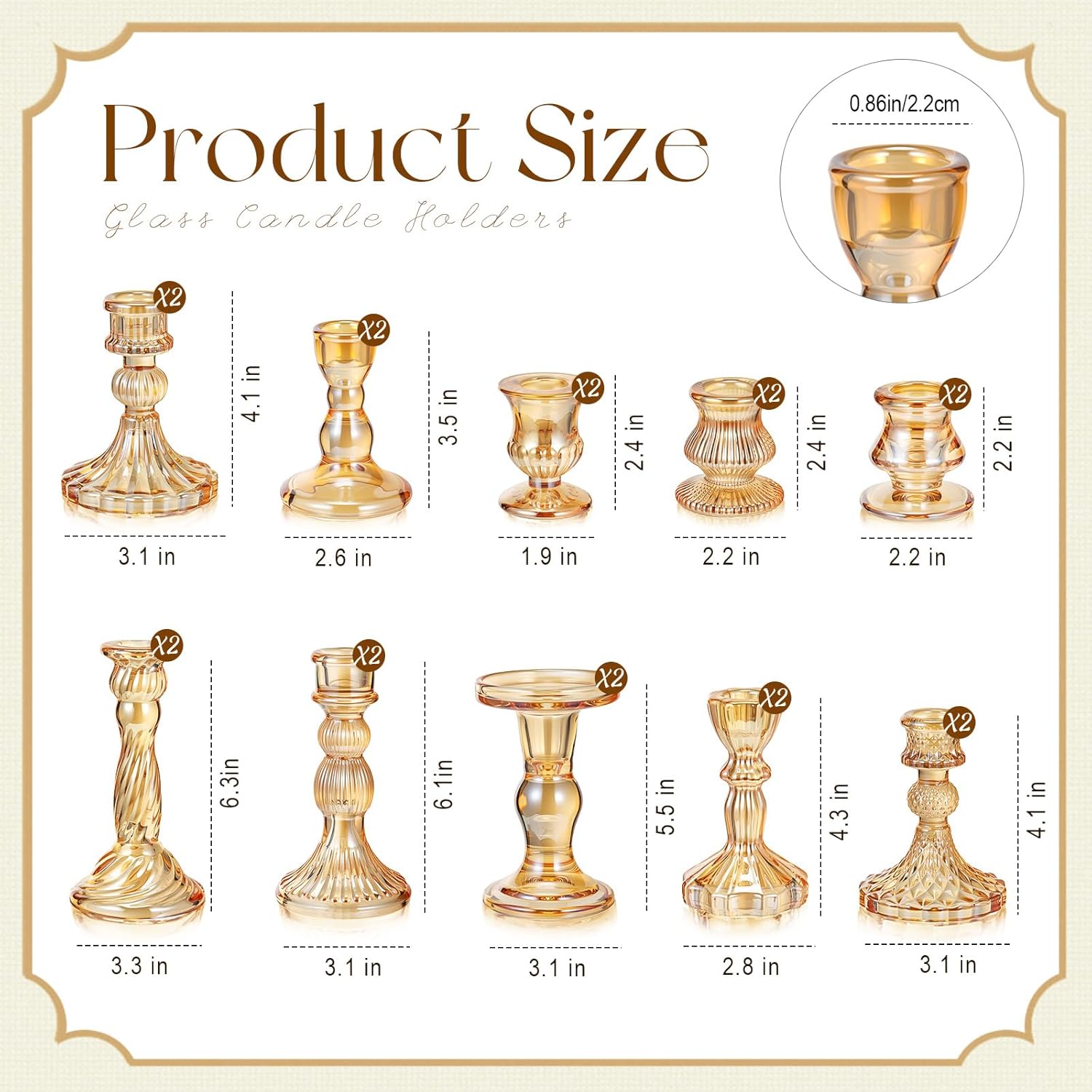 - Package Contents: you will receive 10 pieces 10 style gold glass candle holders in different sizes, which have different heights, smooth shapes and smooth finishes; The candlestick holder add a clean, simple, and elegant aesthetic to any space, it is suitable for a variety of candles