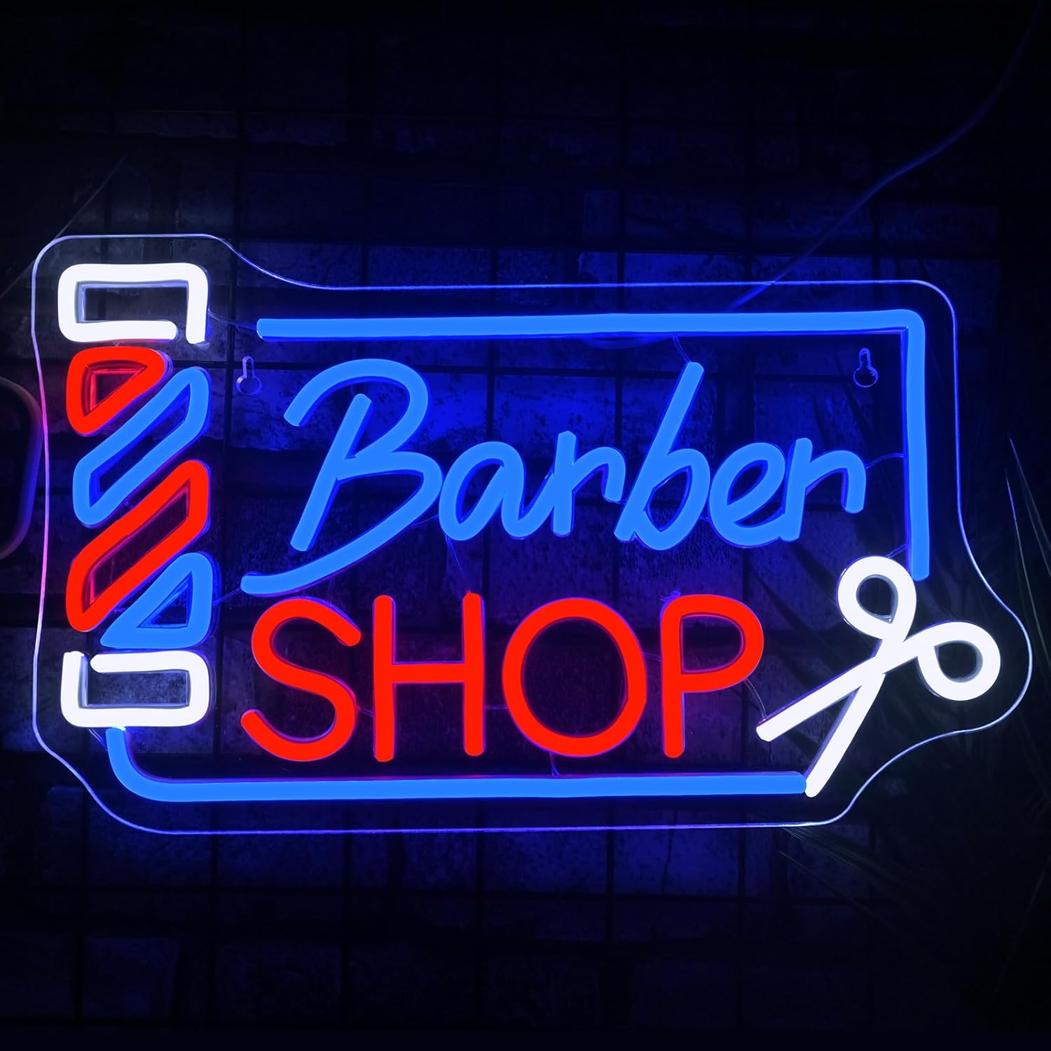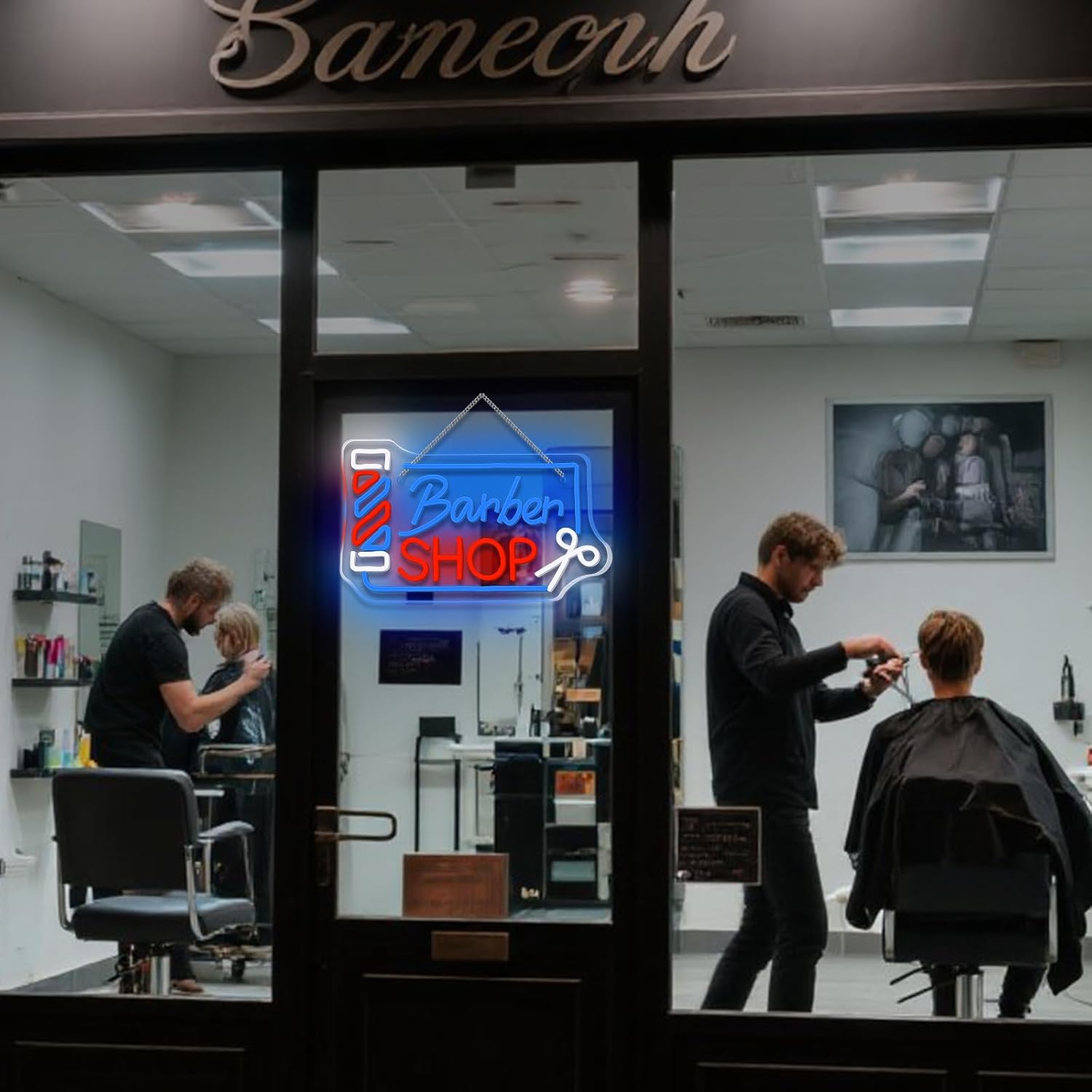 - Barber Store sign:measures 14.56 x 8.66 inches barbershop LED neon light is colorful and vibrant, ideal for salon window advertising and in-store decorations, and a novel decorative accessory for your barber business!