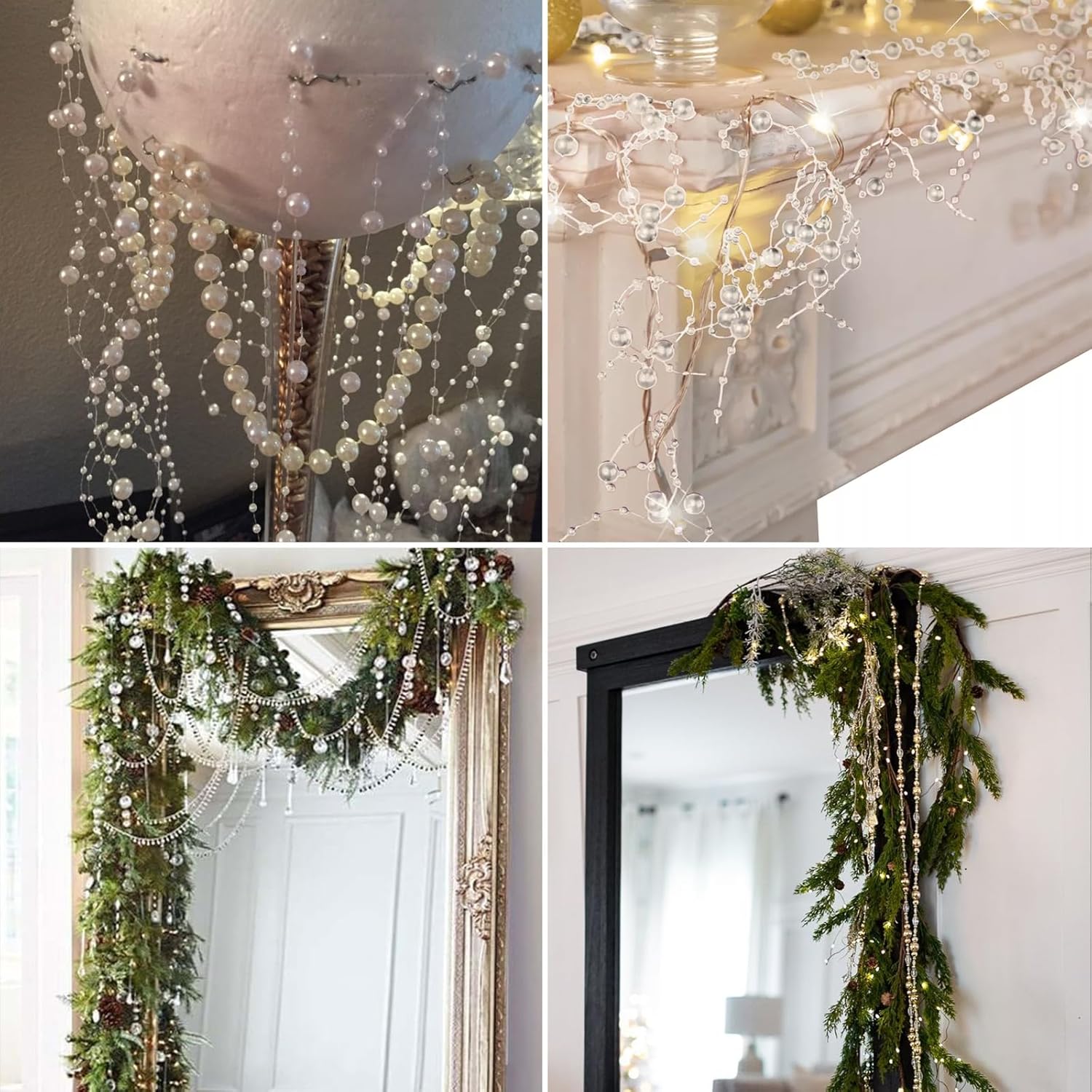 - 【ABS Pearl Beads Garland】The Iridescent color pearl beads garland is made of high quality ABS material with plastic wires. Lead free and will not irritate skin; Waterproof and odorless; Fading and peeling free; Mellow pearl strand with smooth surface and shiny.