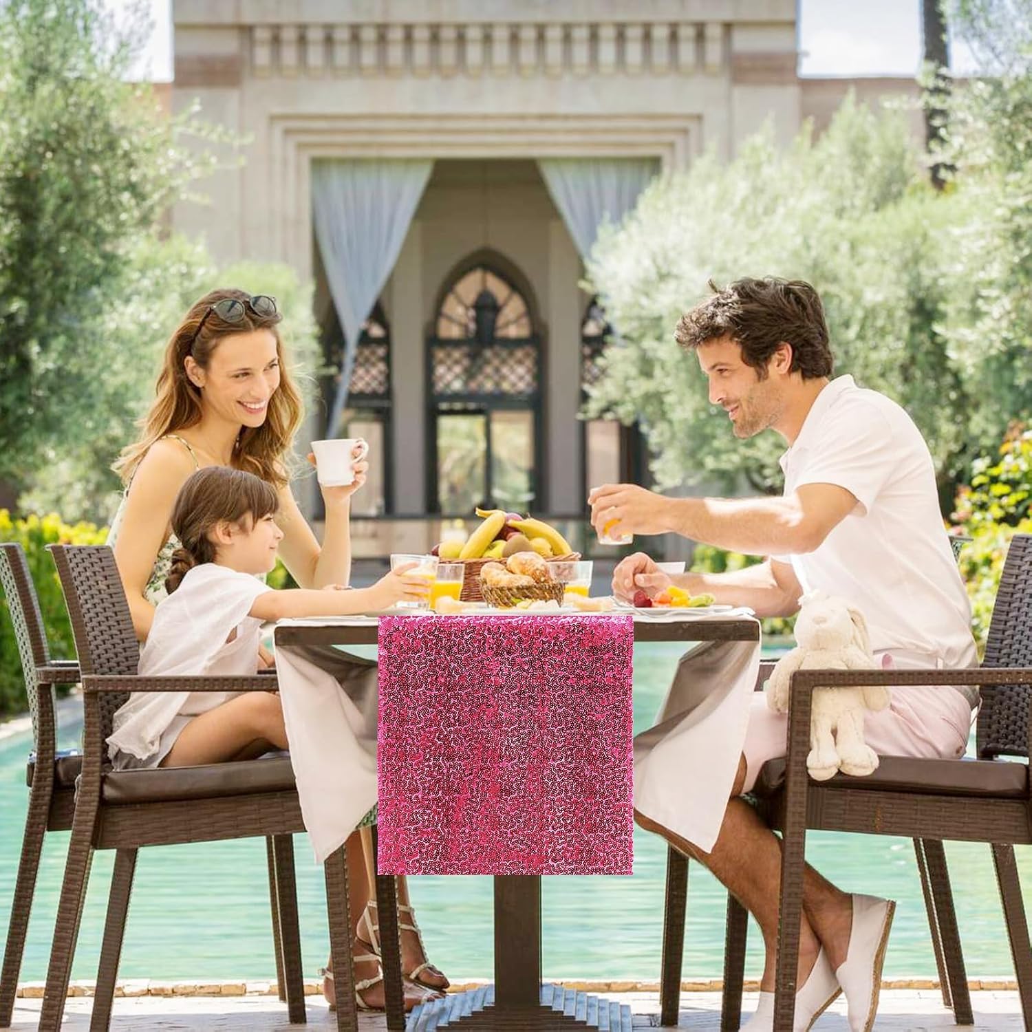 2 Packs 12 x 72 inches Sequin Table Runner, Hot Pink Glitter Table Runner for Birthday Party Supplies Wedding Engagement Baby Shower Holiday Celebration Event Decorations
