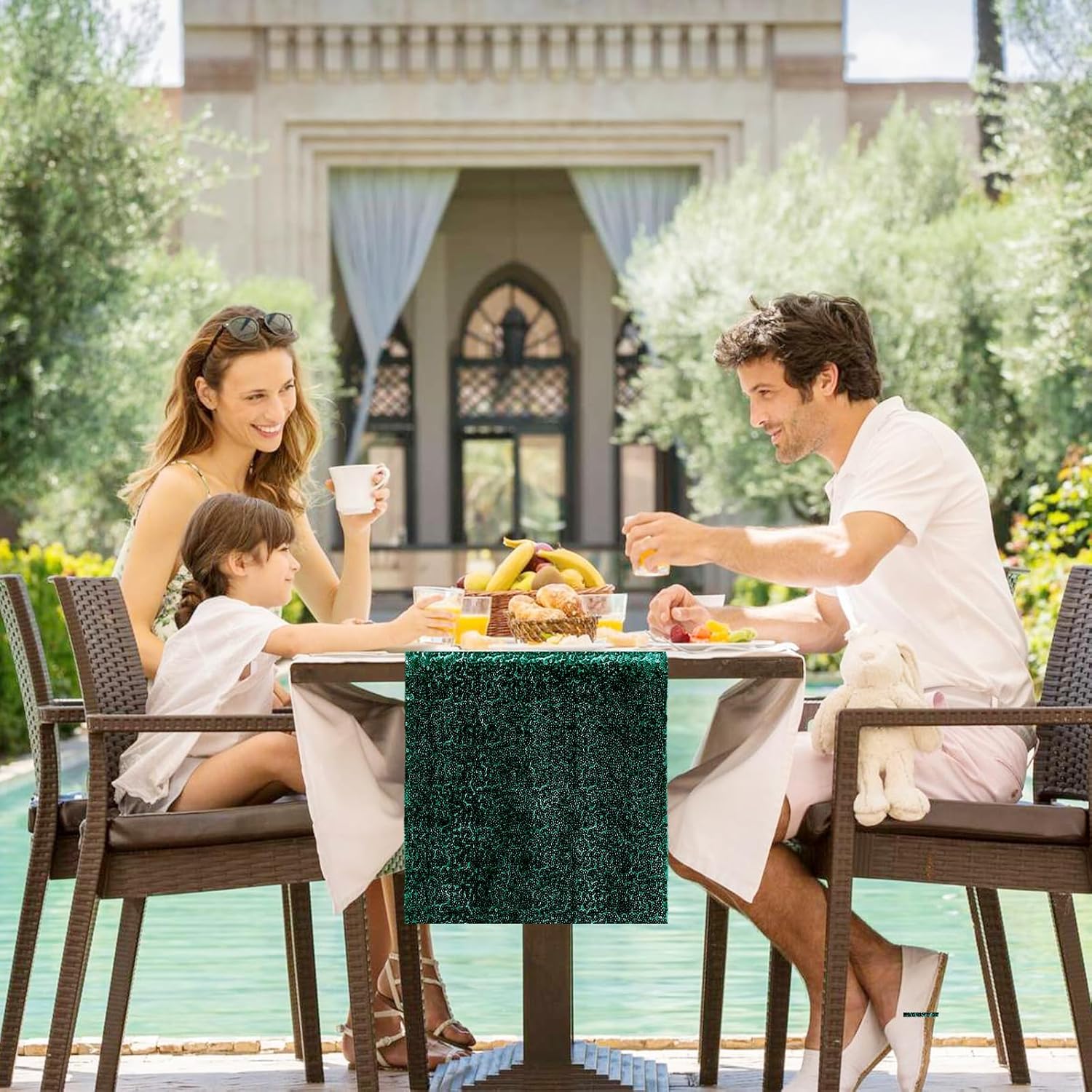 10 Packs 12 x 72 inches Sequin Table Runner, Hunter Green Glitter Table Runner for Birthday Party Supplies Wedding Engagement Baby Shower Holiday Celebration Event Decorations