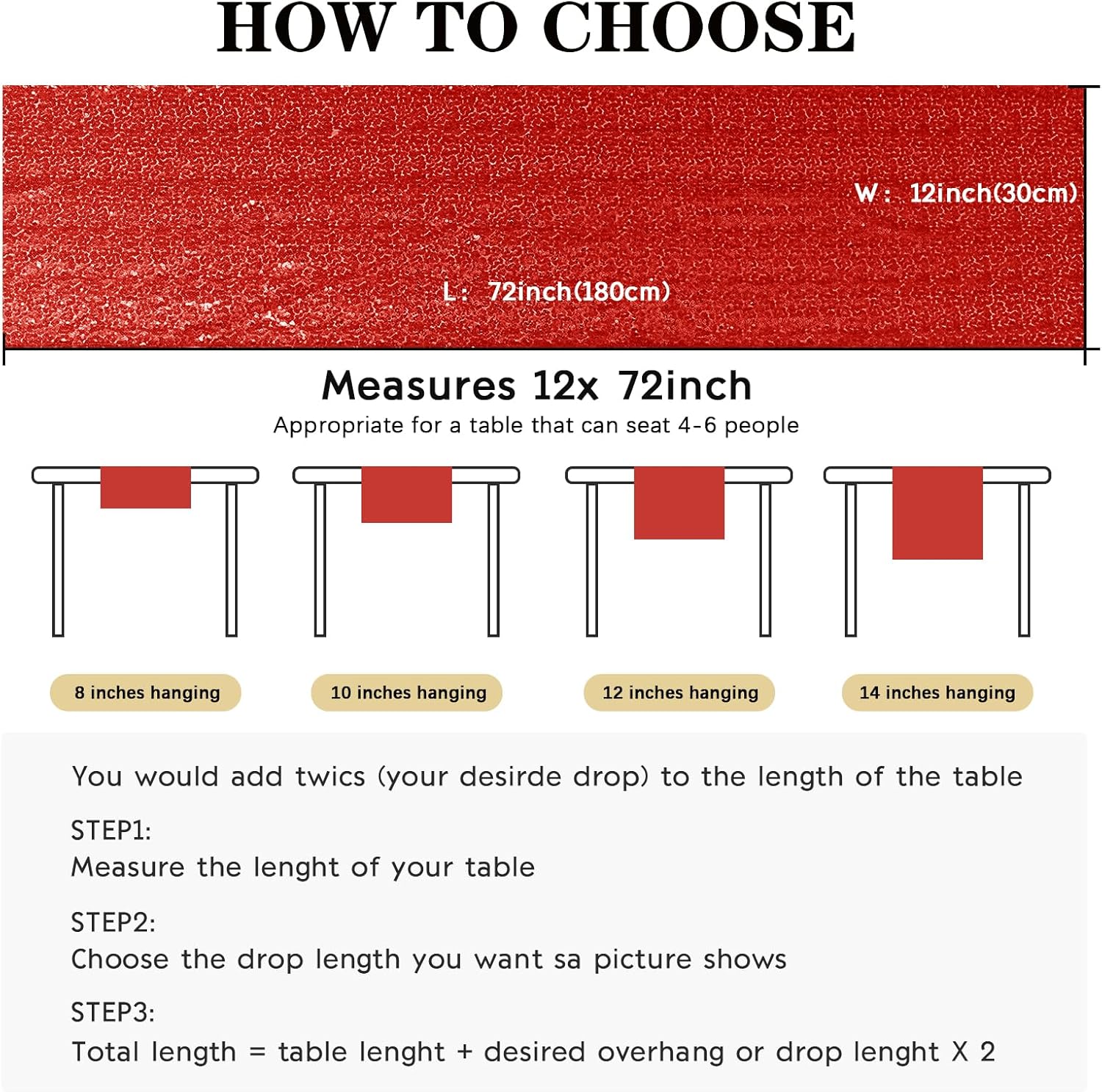 - Package Include: Each sequin table runner measures 12" x 72", total 6 pieces, perfect for a table that seat 4-6 people. The sequin table runner is appropriate for rectangle or round tables.