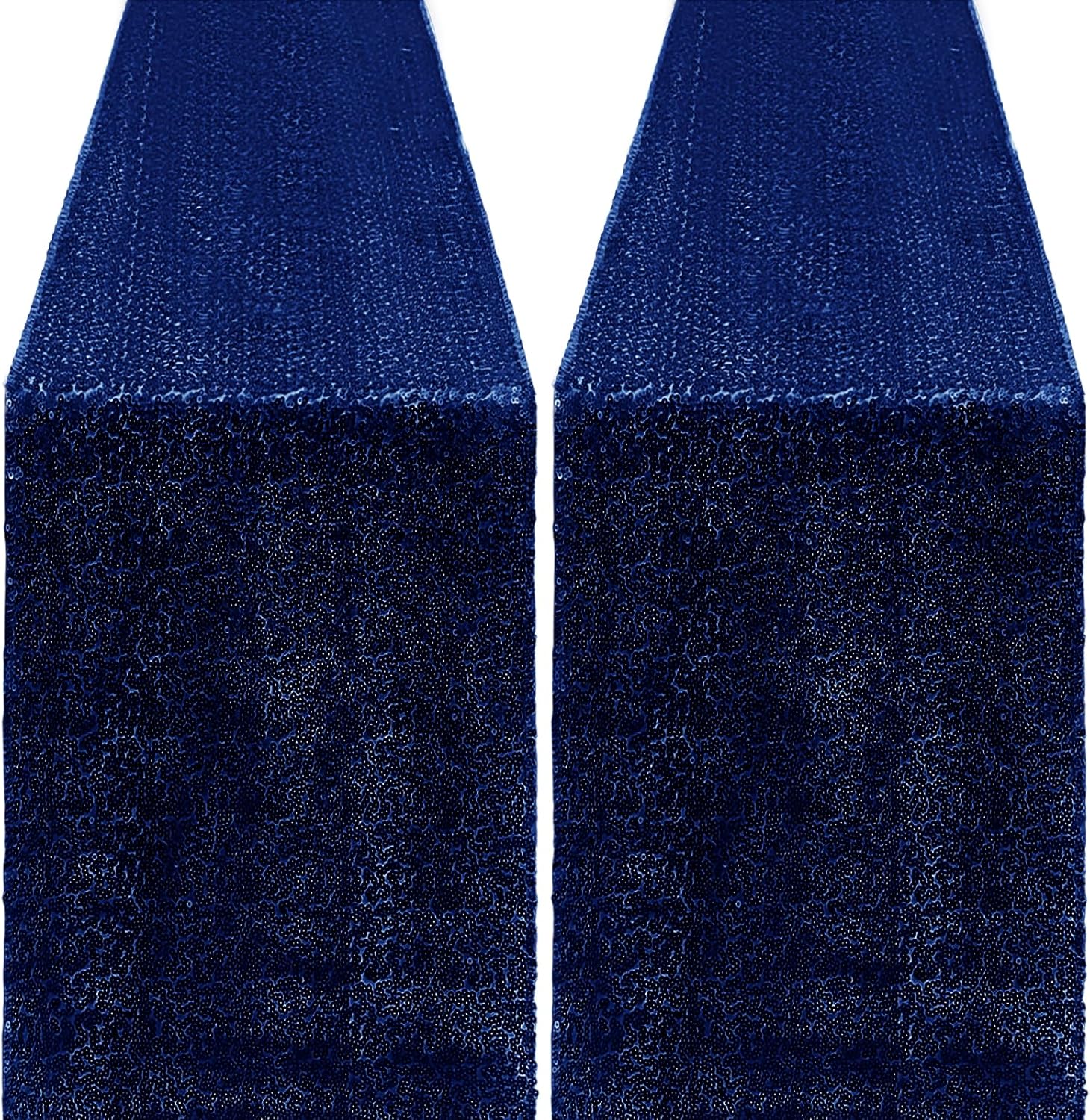 2 Packs 12 x 72 inches Sequin Table Runner, Navy Blue Glitter Table Runner for Birthday Party Supplies Wedding Engagement Baby Shower Holiday Celebration Event Decorations