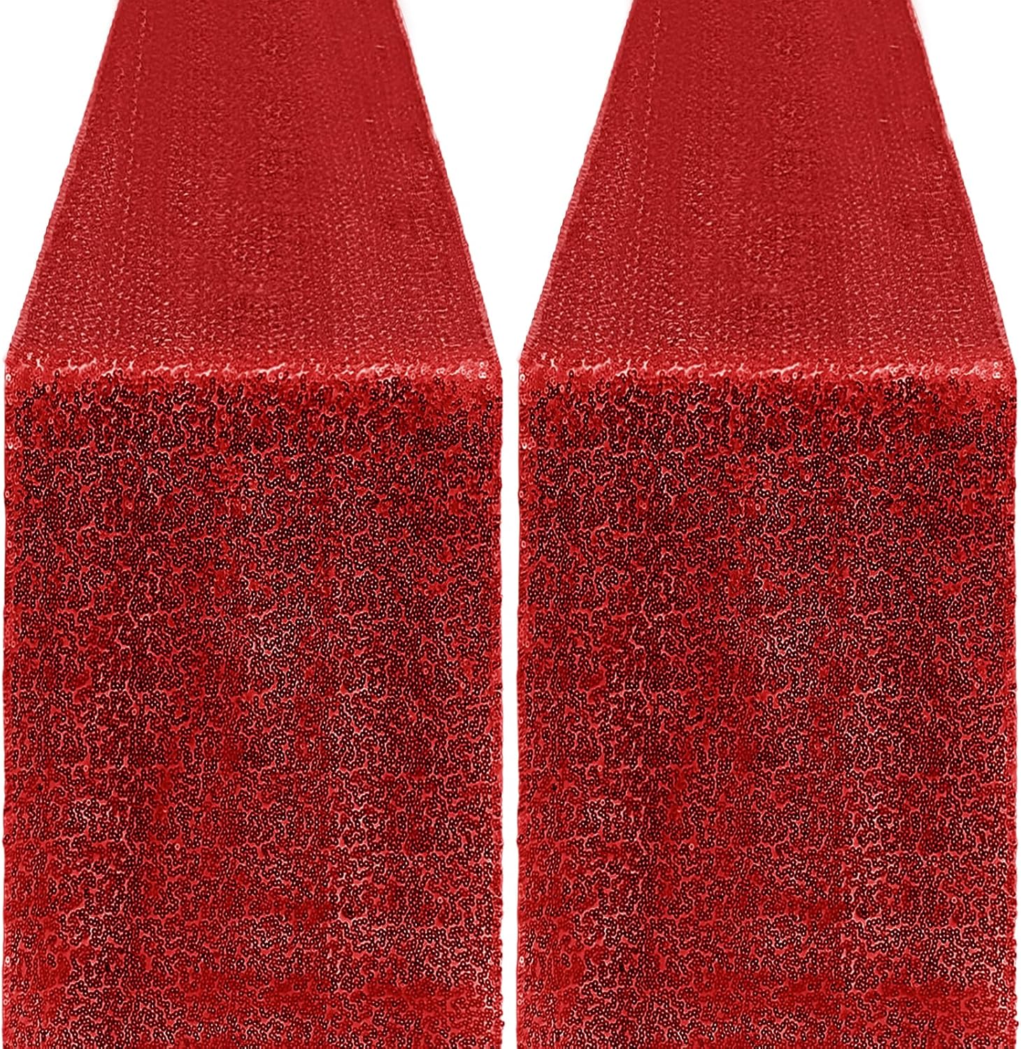 2 Packs 12 x 72 inches Sequin Table Runner, Red Glitter Table Runner for Birthday Party Supplies Wedding Engagement Baby Shower Holiday Celebration Event Decorations