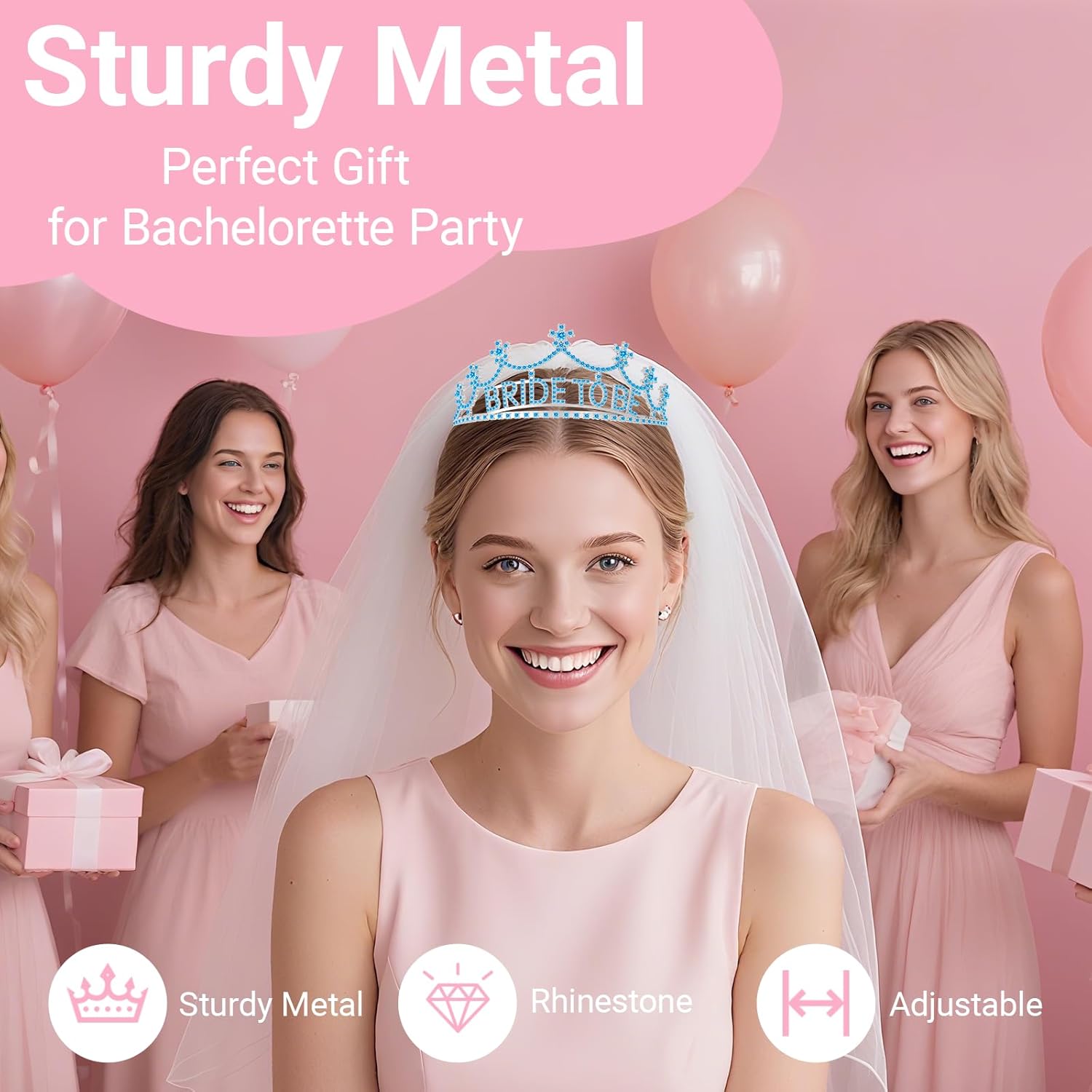 3Pcs Bride to Be Crown with Sash and Veil for Bachelorette Party Decorations,Bridal Shower Accessories for Gift, Favors