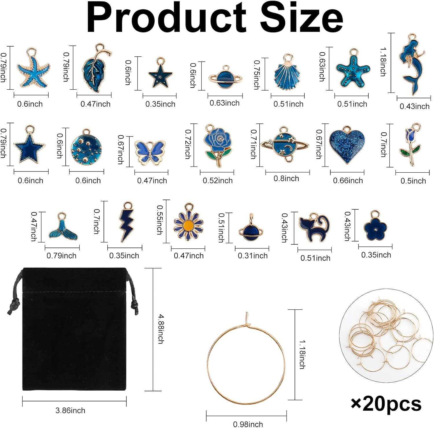 - Package Content: You will receive 20 pieces blue ocean themed charms and 1 storage bag. 20 wine glass charms of different patterns are combined with some classic elements of summer beach, such as goblets, shells, starfish, dolphins, coconut trees, dresses, guitars, pineapples, grapes, cherries and so on. These cute wine glass tags are sure to bring more joy to your party time