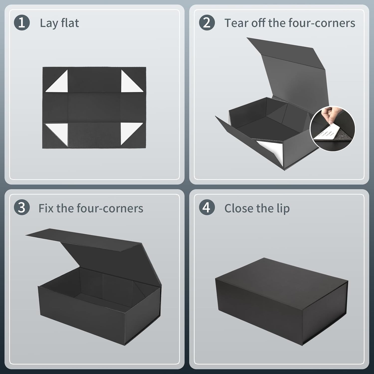 - EASY TO ASSEMBLE: For easy transportation,the gift box is designed to be folded. Unpack the package,tear off the white triangle sticker,paste and assemble the box.