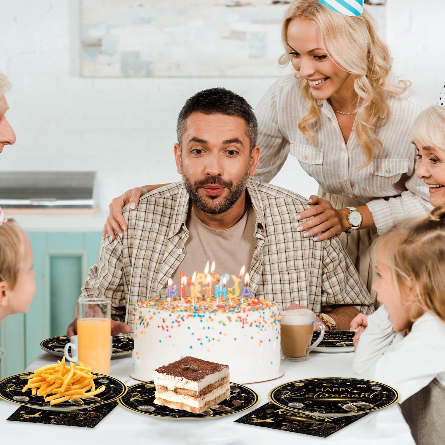 40pcs Happy Retirement Party Supplies Decorations Set, Black Gold Happy Retirement Plates and Napkins for Men and Women, Suitable for 20 Guests