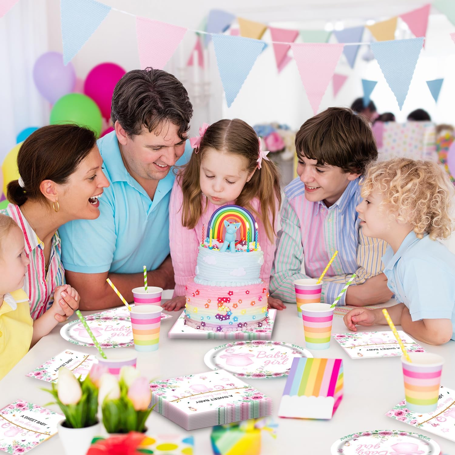 40pcs Pink Floral Baby Shower Decorations Girl Gender Reveal Supplies,Spring Rose Pink Baby Shower Plates and Napkins,Suitable for 20 Guests