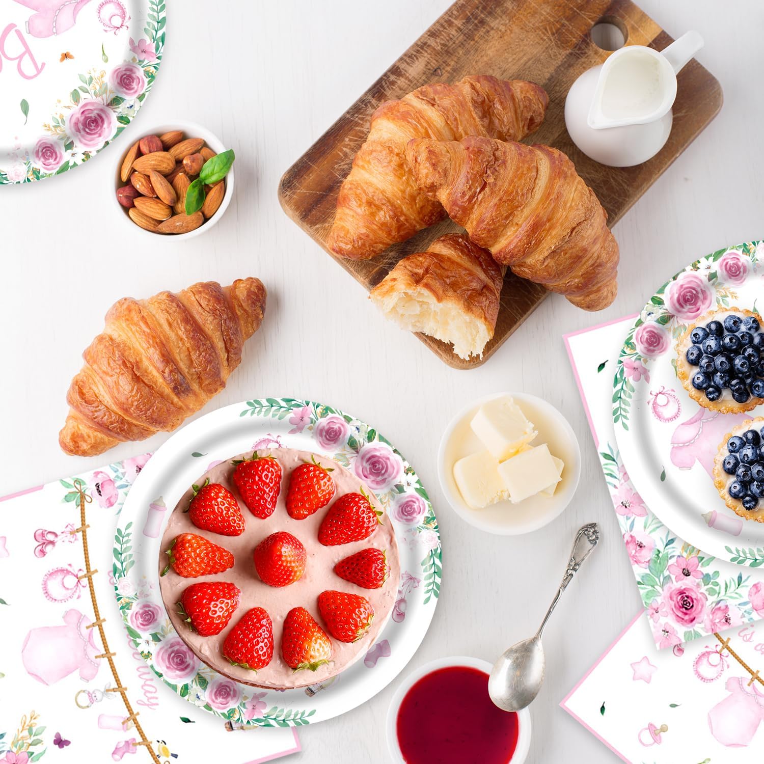 - Package Contents: Set includes 20pcs 7-inch pink baby shower plates and 20pcs 6.7x6.7-inch pink baby shower napkins, ensuring you have enough supplies for your guests.Convenient packaging makes it easy to store and transport.