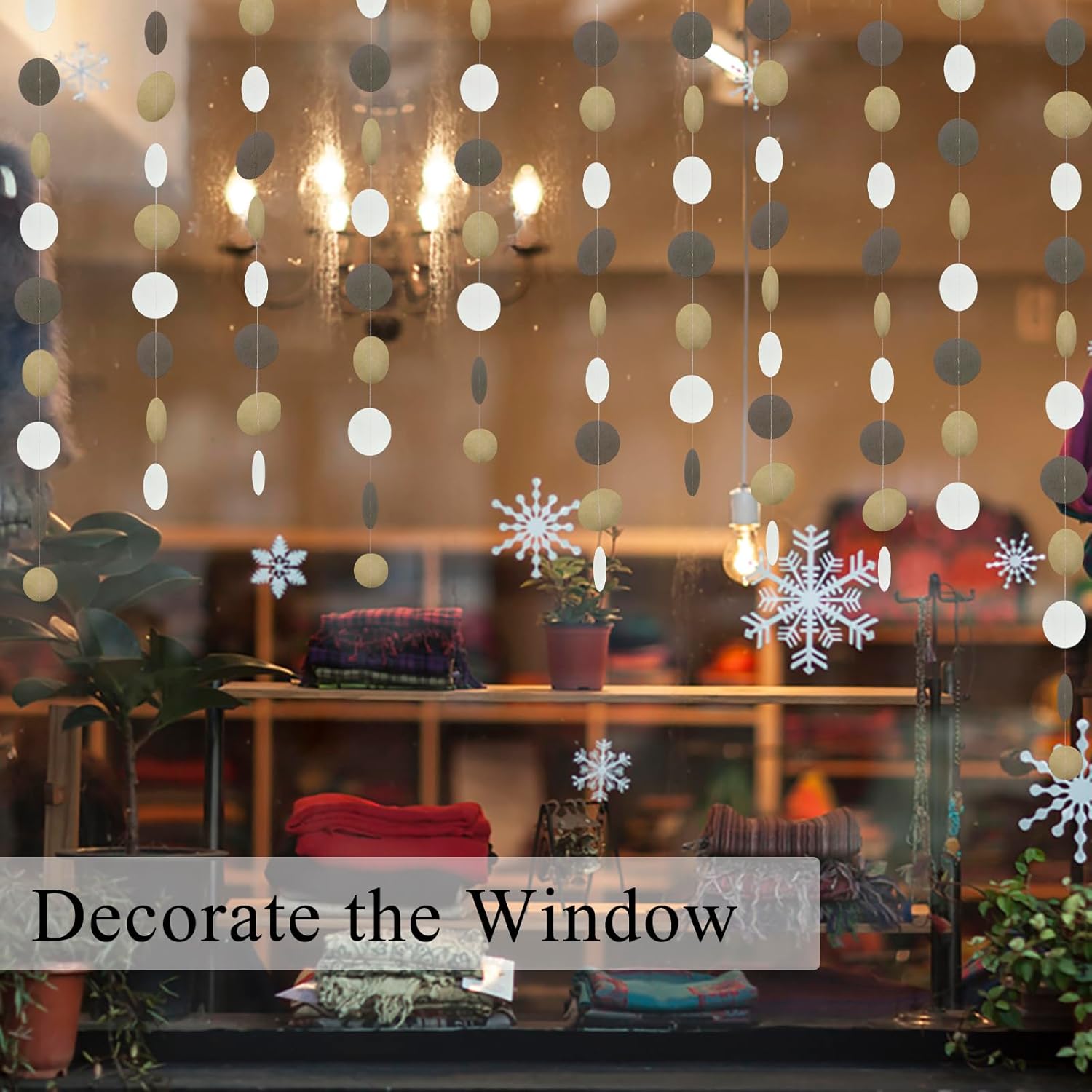 - HOW IT'S MADE - MerryNine Paper Garland is made of high quality double sided gold gittler paper and card stock circle polka dots that is sewn together with double sturdy thread, each thread is sewn with 40pcs dots, each end has plenty of extra thread to makes it easy to hang the garland