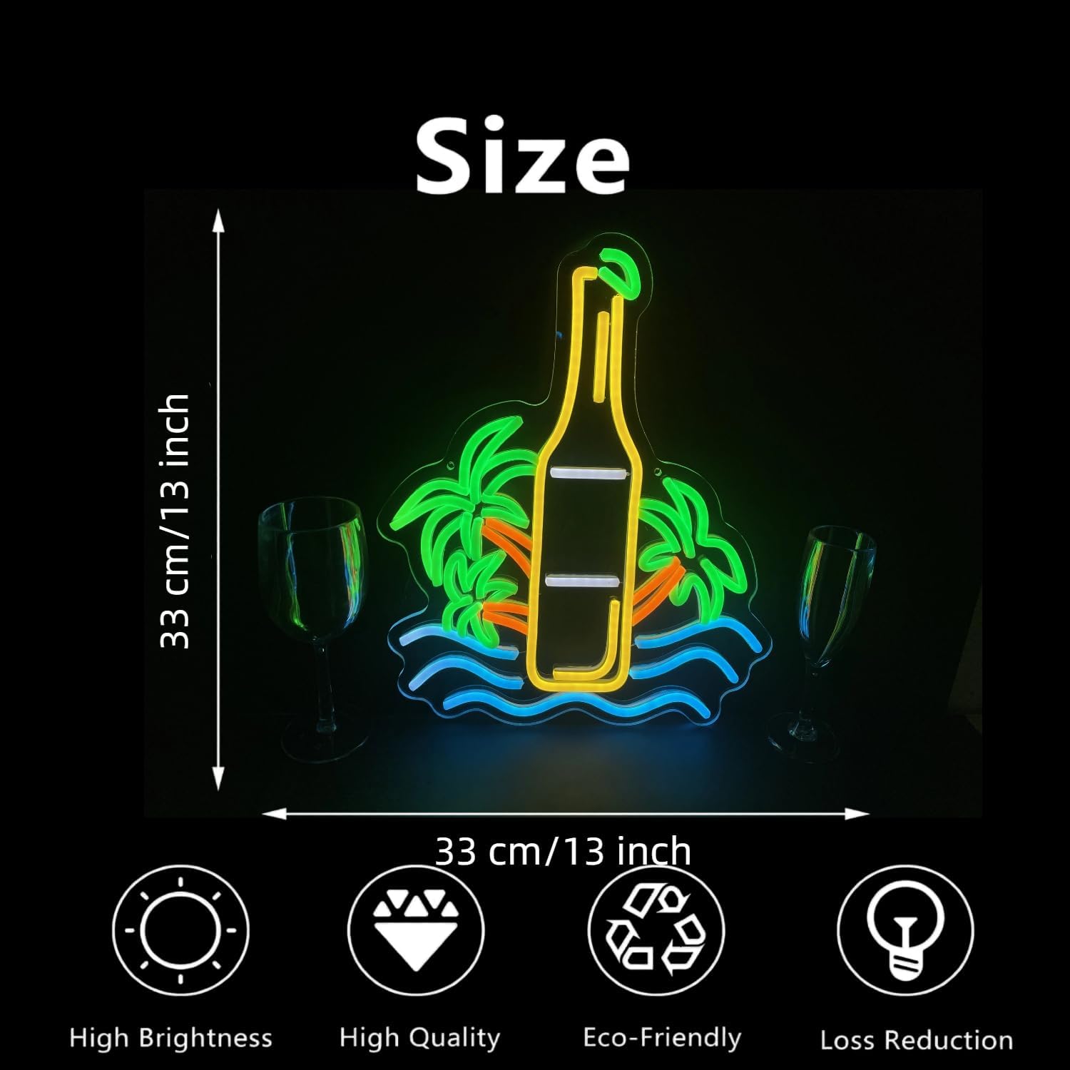 Palm Tree Beer Bottle Neon Sign Dimmable LED Neon Light for Wall Decor, Neon Light Up Signs for Man Cave Pub Store Party Club LED Lights Decor