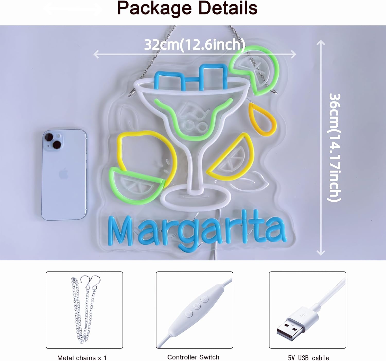 CNBEYOUNG Margarita Neon Sign, Neon Lights Hanging Wall Art Decoration for Restaurants Shop Cocktail Bar Kitchen Party Home Decor, USB - Driven, Super Bright & Adjustable,14.17x 12.6inches