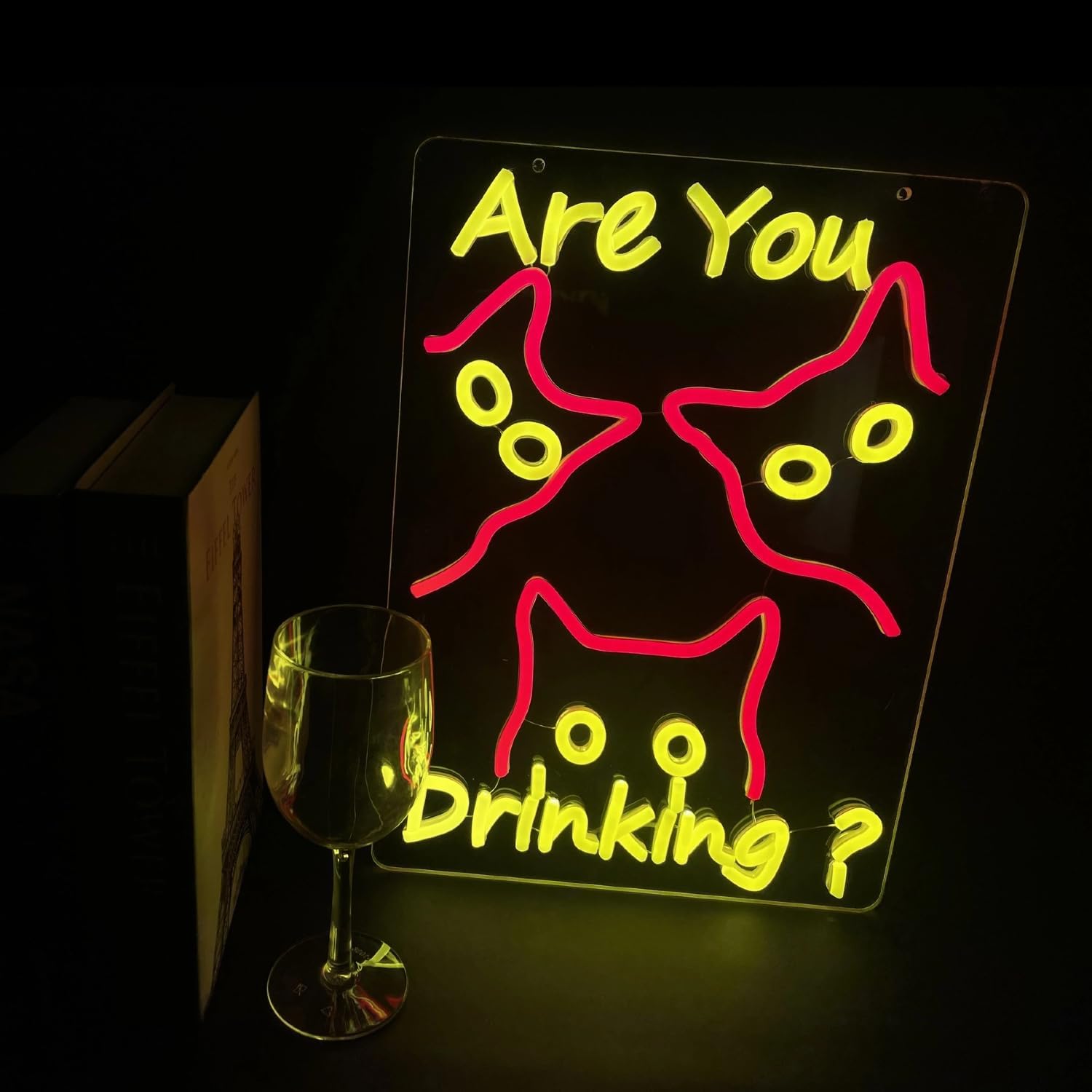 Are You Dringking Neon Sign Cat Neon Sign for Wall Decor,Cat Beer LED Neon Signs for Beer Wine Bar Kitchen Restaurant Home Pub Party Man Cave Club