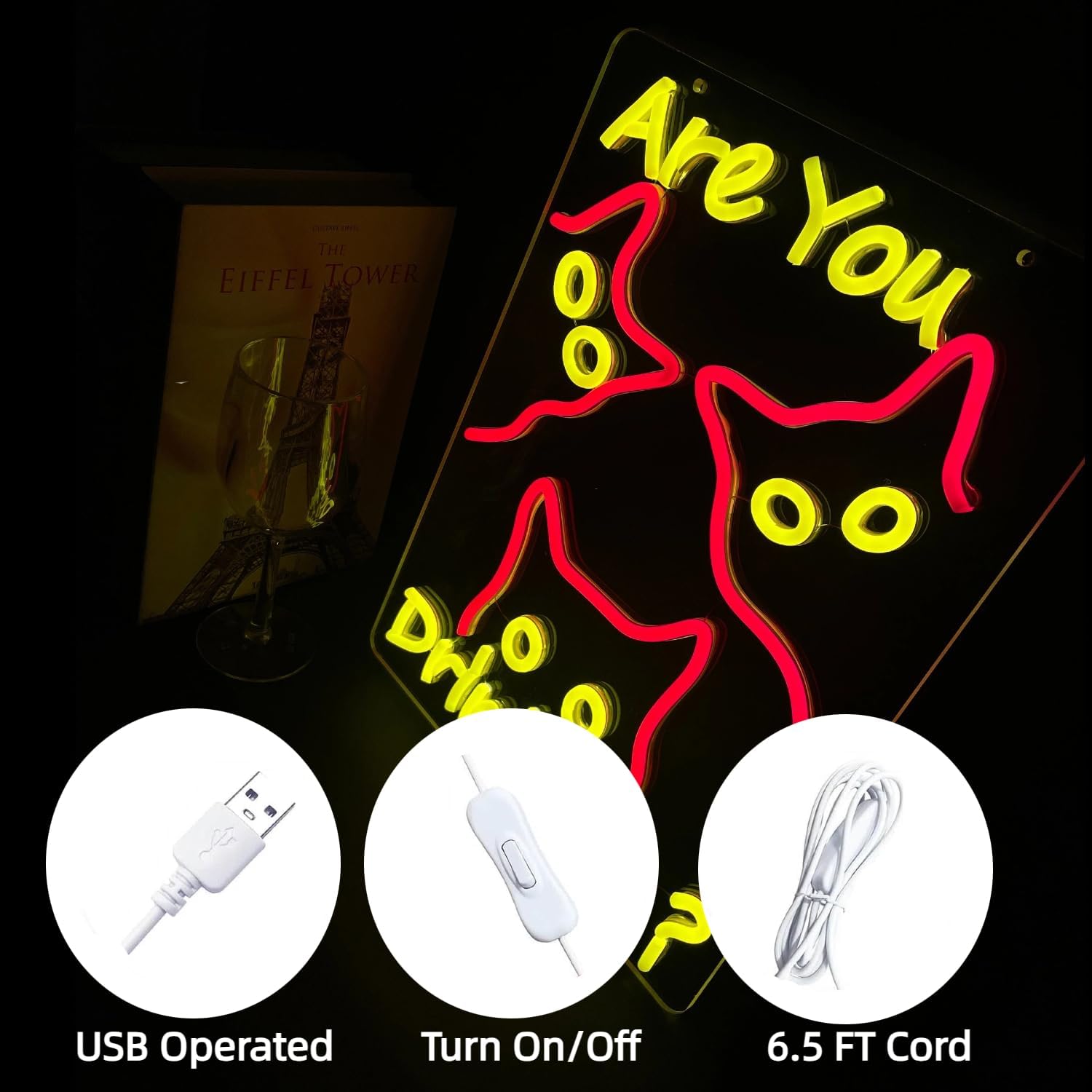 - Neon Cat Bar Sign No Wiring Hassle Includes 6.5ft USB-C cord + stealth mounting kit - transform dorm rooms into cyberpunk cat cafés in 5 minutes. No electrician needed.