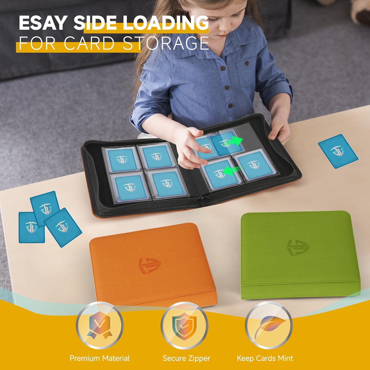 - Shield+Top Loader Binder: TCGUARD Top Loader Zip Binder it’s sturdy and premium build and unique "Shield" design make it perfect for your collection. This premium collector's binder holds 112+ cards in 3"x4" toploaders. The perfect way to safely browse your cards and never have to worry about your valuable cards being damaged. Offer 5 different stylish colors to match your tastes.