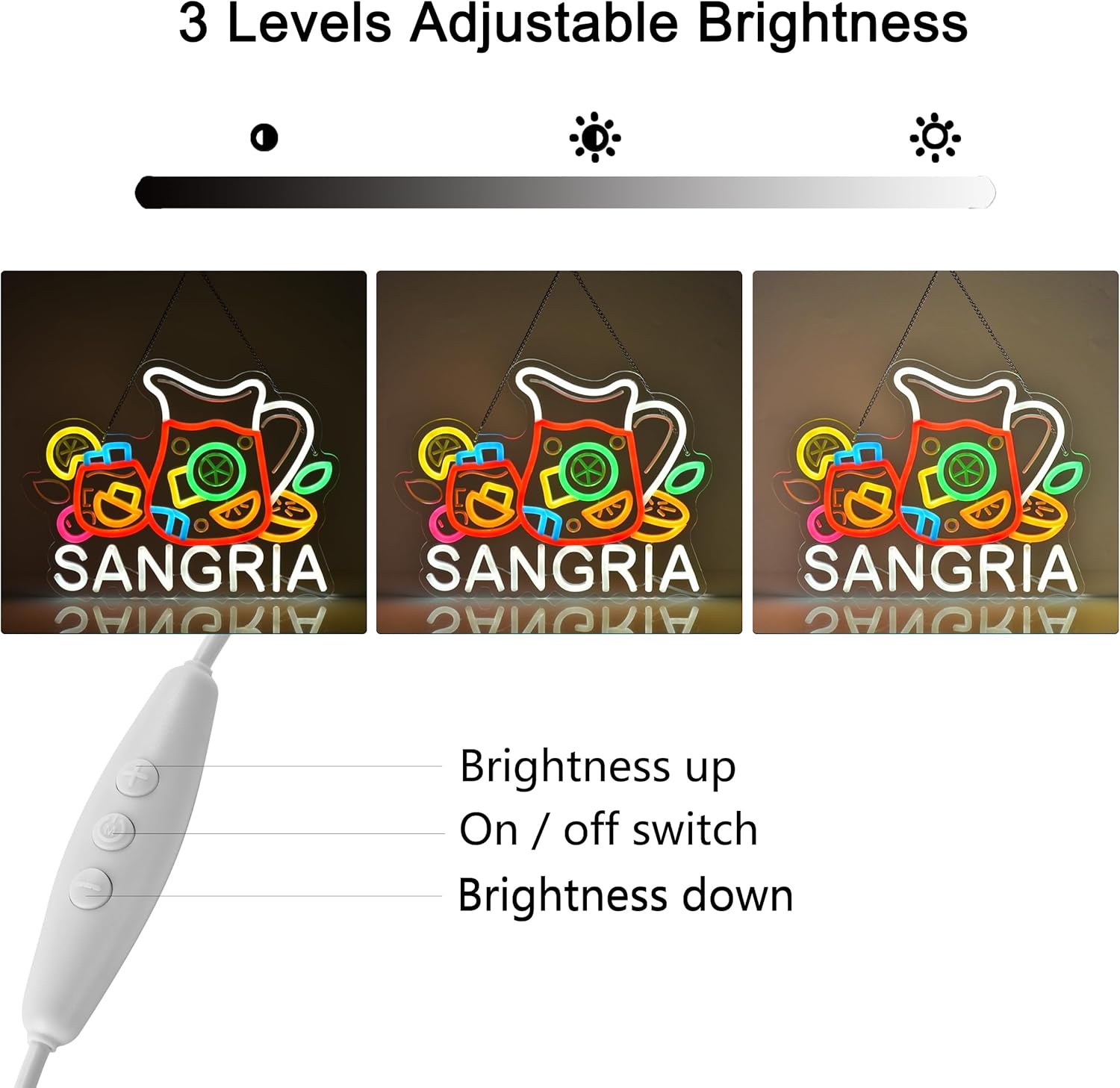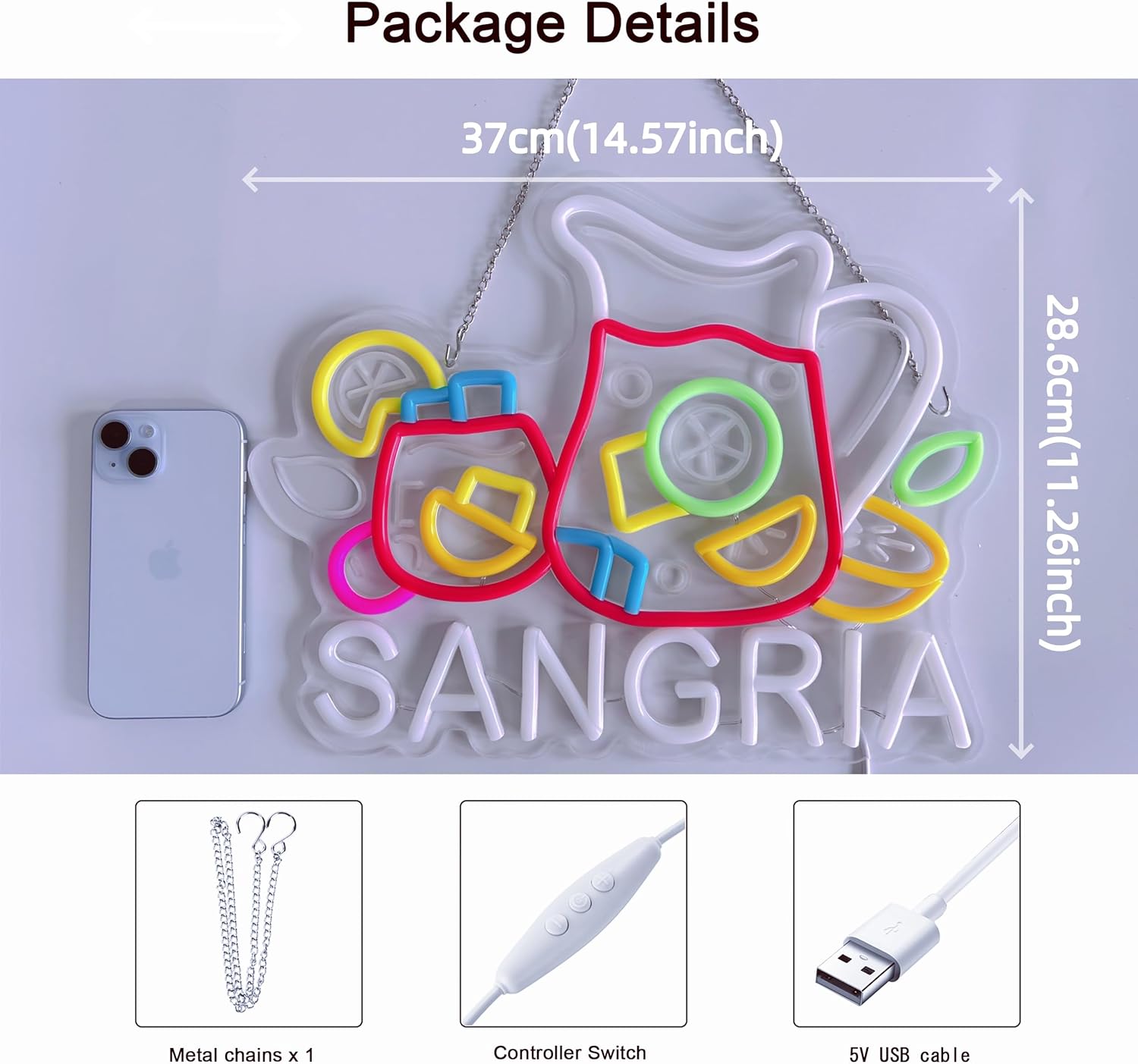 CNBEYOUNG Sangria Neon Sign, Neon Lights Hanging Wall Art Decoration for Restaurants Shop Bar Kitchen Garden Party Home Decor, USB - Driven, Super Bright & Adjustable,14.57x 11.26inches