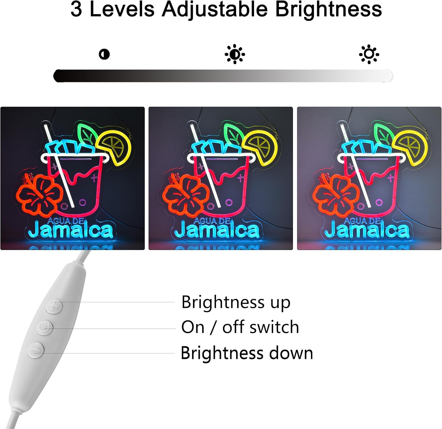 - Make Your Business Stand Out: The neon sign is composed of patterns of a cup of jamaica and a flower,with adjustable brightness. Its high-recognition design and vibrant color can attract customers' attention over a long distance let them know easily what your business is, and bring them to your restaurant/bar/shop/club/store; It can also create a great atmosphere if placed inside the room.