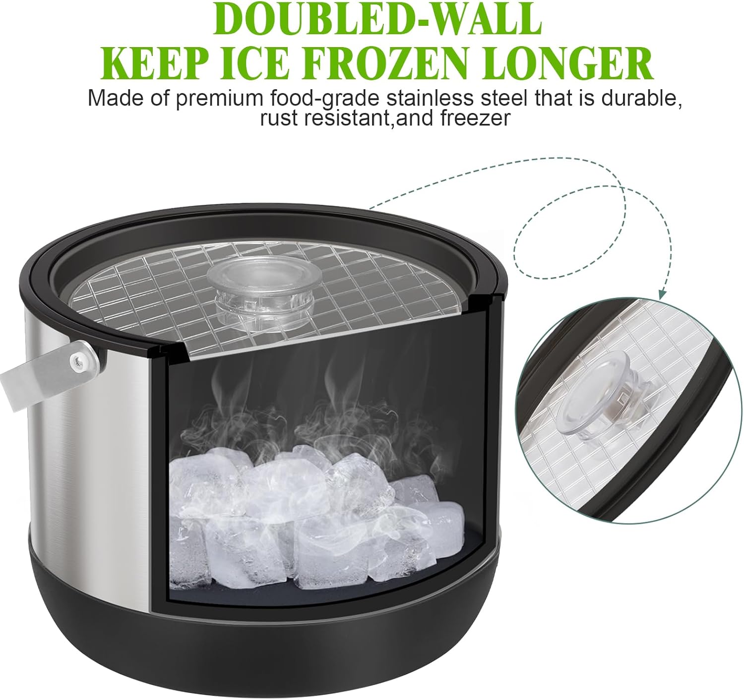 - 【Easy To Use and Carry】Our ice bucket is designed for hassle-free transport. Silicone handles provide a secure, non-slip grip, making it easy to take the ice bucket to cocktail parties, even with water on your hands. The handle's swivel feature ensures that it won't be in the way when scooping out ice.Hand washing recommended, DO NOT adviced to use dishwasher clean