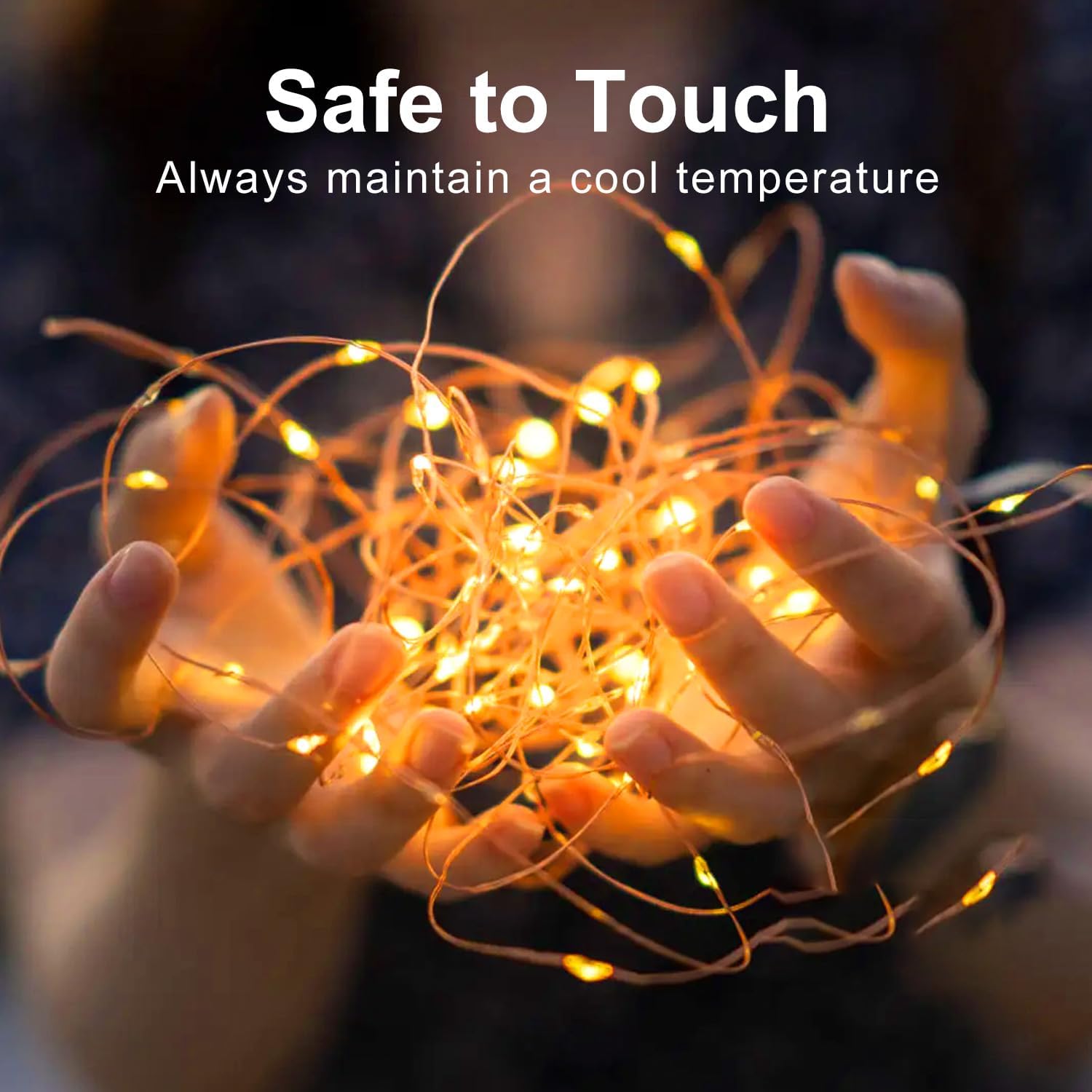 - 【IP65 WATERPROOF STARRY LIGHTS】-- These battery powered string can be used indoors and outdoors without worrying about moisture or weather damage. Fairy lights are perfect for anyplace, including water,ice cubes,vases,snowman,pool,crafts and more. Note: Only the string lights is waterproof, the battery pack is not.