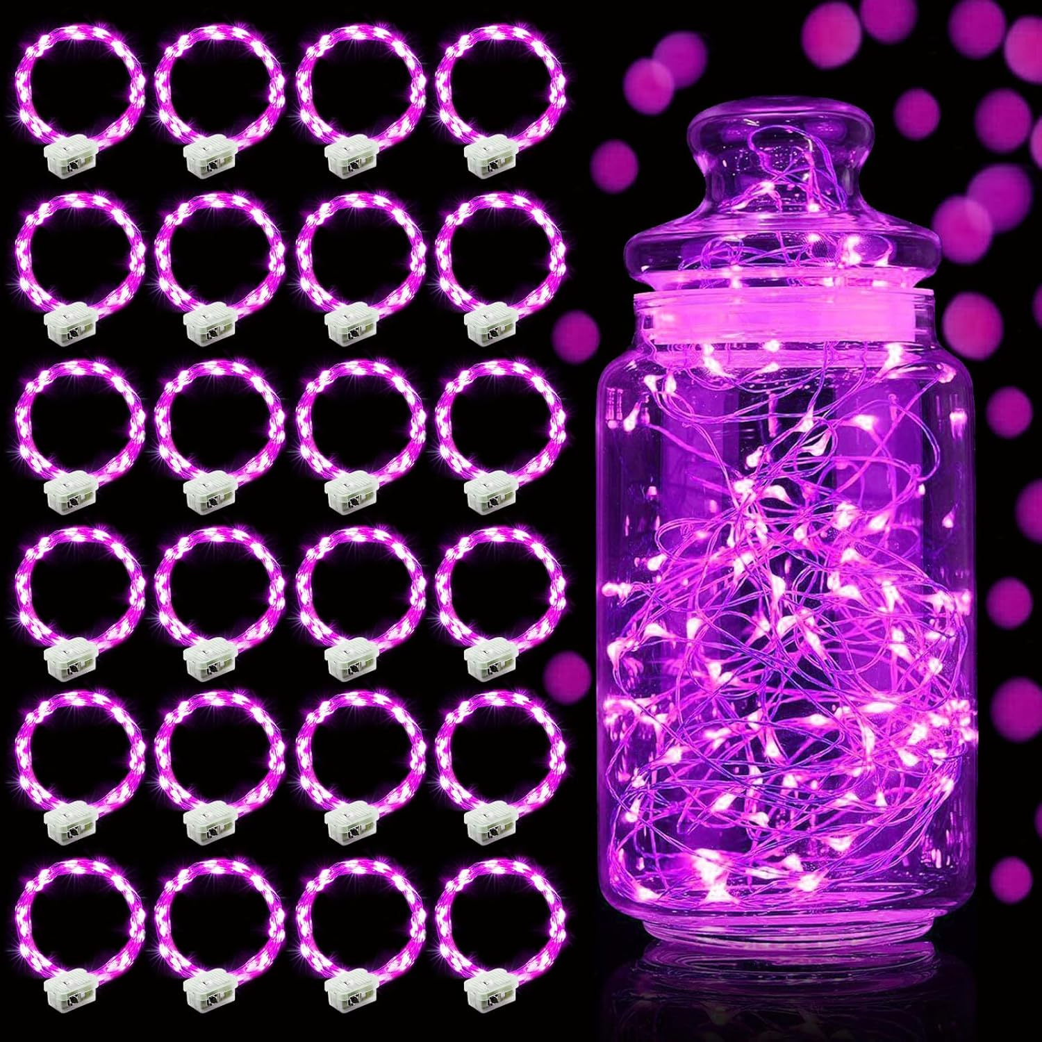Aogist 24 Pack Fairy Lights 3 Modes 7ft 20 LED Waterproof,Battery Operated Silver Wire Firefly Starry Moon Mini String Lights for Mason Jars Christmas DIY Crafts Wedding Party Bedroom,Pink