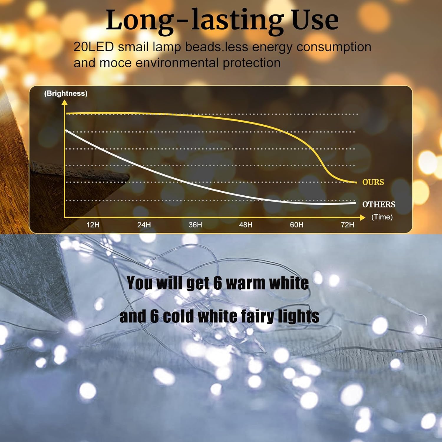 Aogist 12 Pack Fairy Lights 3 Modes 7ft 20 LED Waterproof,Battery Operated Silver Wire Firefly Starry Moon Mini String Lights for Mason Jars Christmas DIY Crafts Party Bedroom,Cool White&Warm White