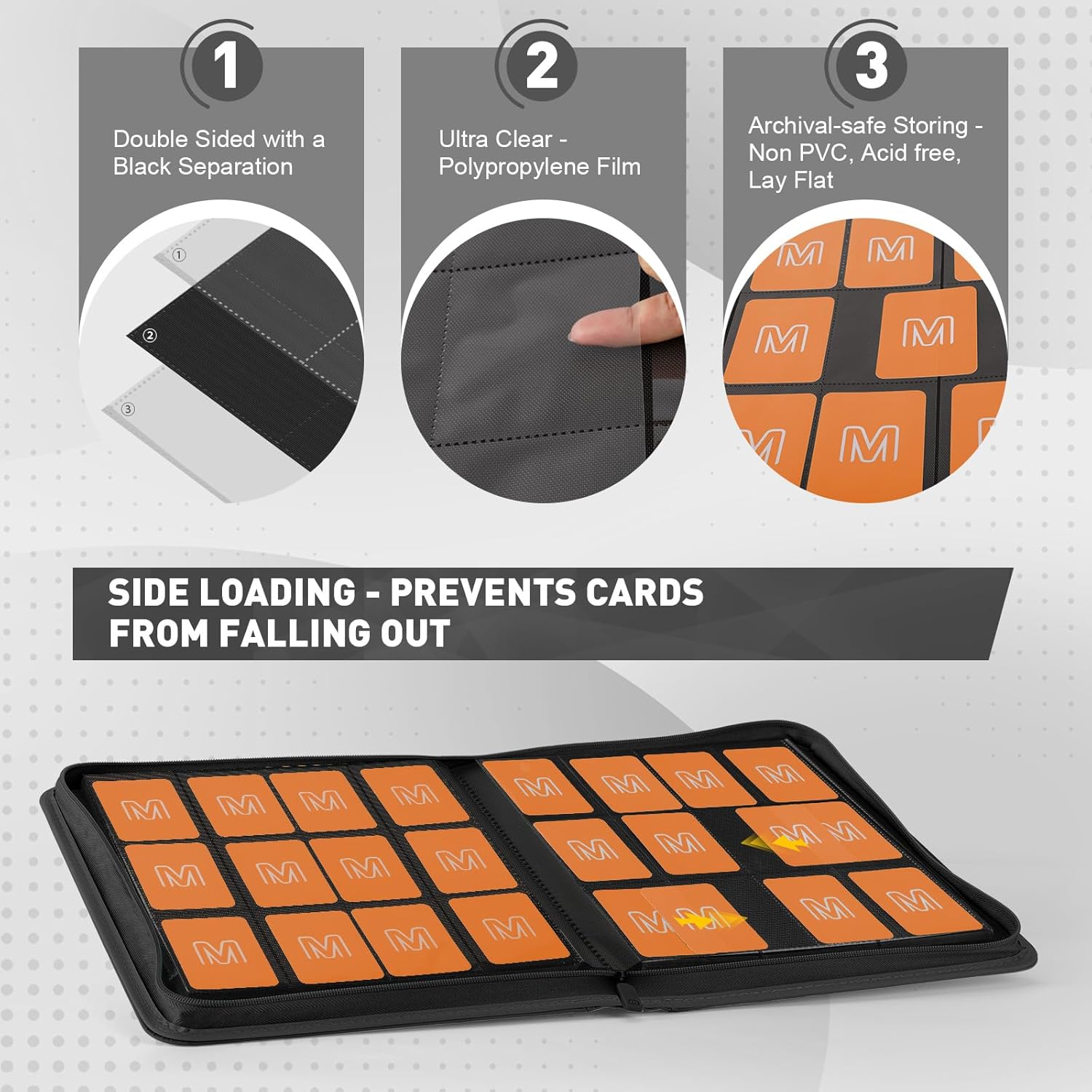- 【SECURE CARD STORAGE】The Card Binder features a secure design that effectively stores and protects your cards from bending or tearing. With its innovative design, you can easily flip through your collection without worrying about the cards slipping out of place. Keep your valuable cards safe and organized with our card binder.