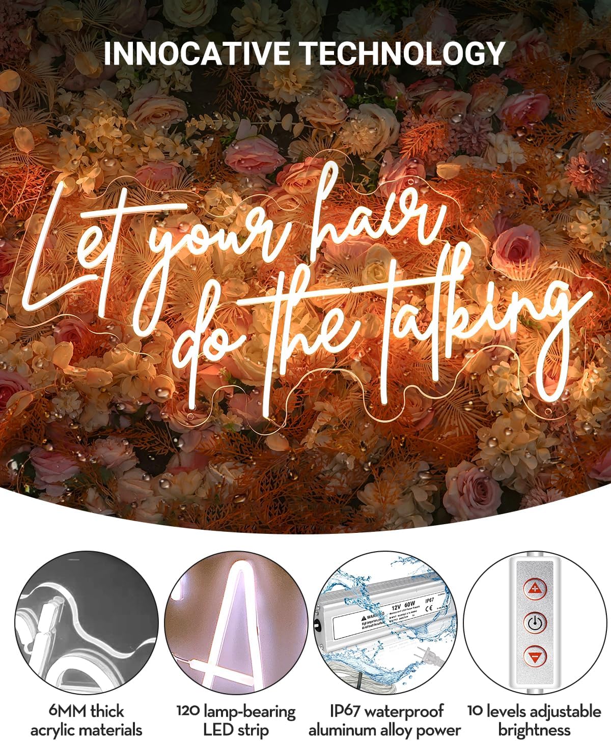 - 💧【Standard Waterproof Technology】Our custom outdoor neon sign adopts advanced waterproof technology and durable materials, and features an IP67-rated waterproof, ensuring its longevity and continuous performance. IP67 is more professional waterproof level, which can provide better protection against rain, sun/high temperature, dust and wind. More suitable for outdoor wedding banquet, community market or outside camping party!