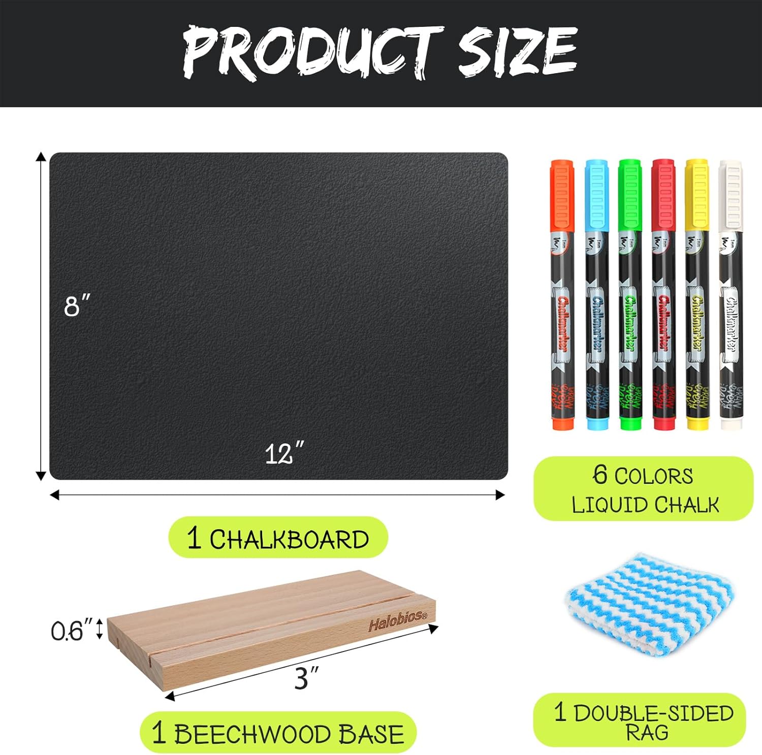 - ♥CHALKBOARD SET INCLUDES: Our chalk board set includes an 8"*12" chalkboard, a beechwood base, 6 colours of markers for chalkboards and a rag.The matching set meets your daily needs!