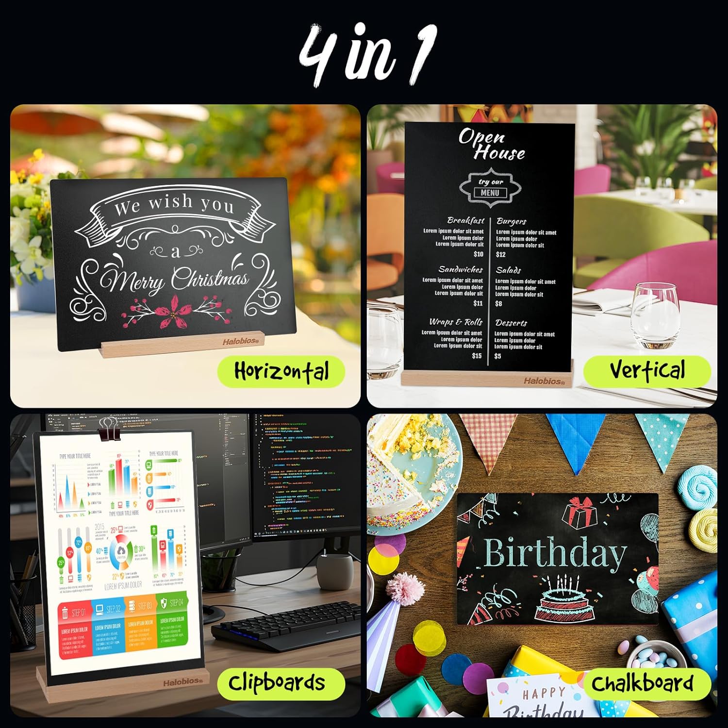 - ♥ENVIRONMENTALLY FRIENDLY AND HIGH QUALITY: The base is made of beech wood, with a 20° slanted groove design on both sides, allowing for vertical or horizontal display. Simply slide the blackboard into the groove for easy installation and removal. The slanted design facilitates display and viewing.