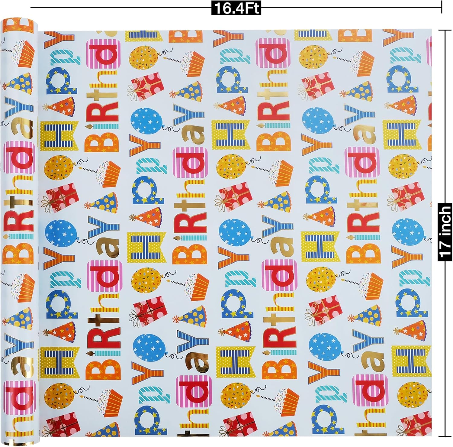- Happy Birthday Design :Featuring gold foil "Happy Biythday" text makes the gift wrapping be more eye-catching, this wrapping paper creates a fun and joyful atmosphere perfect for any celebration