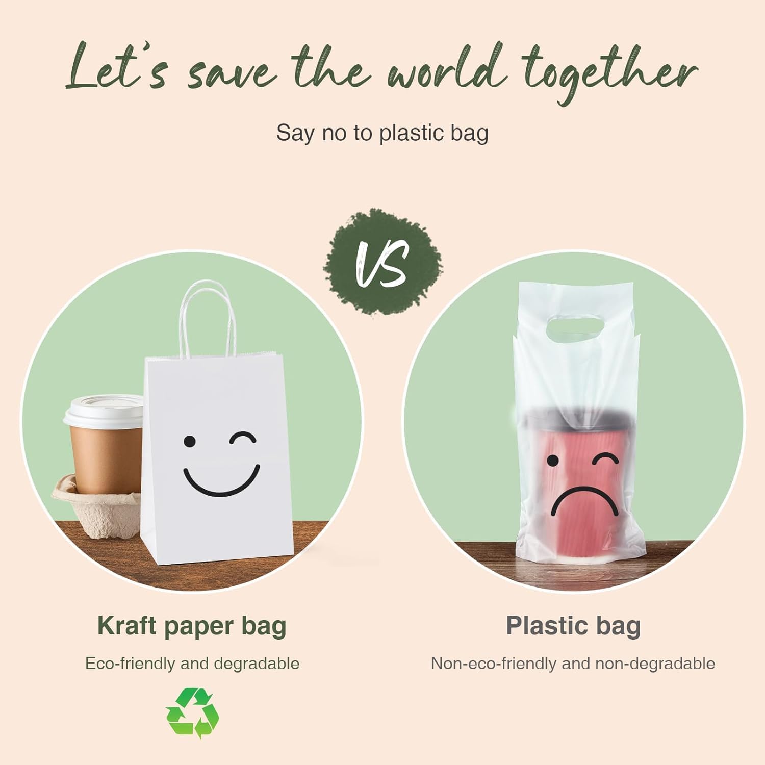 - Eco-friendly Paper Bags: GSSUSA white paper bags are made of recycled paper,FSC-compliant. They are biodegradable, recyclable, non-toxic, odorless, and pollution-free, can be reused for many times. More rustic, upscale and healthier look than plastic bags,and a great alternative to plastic bags.