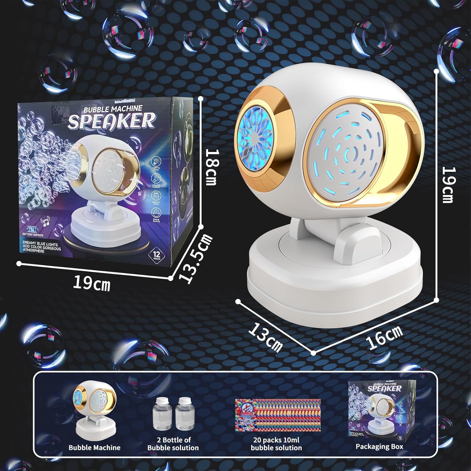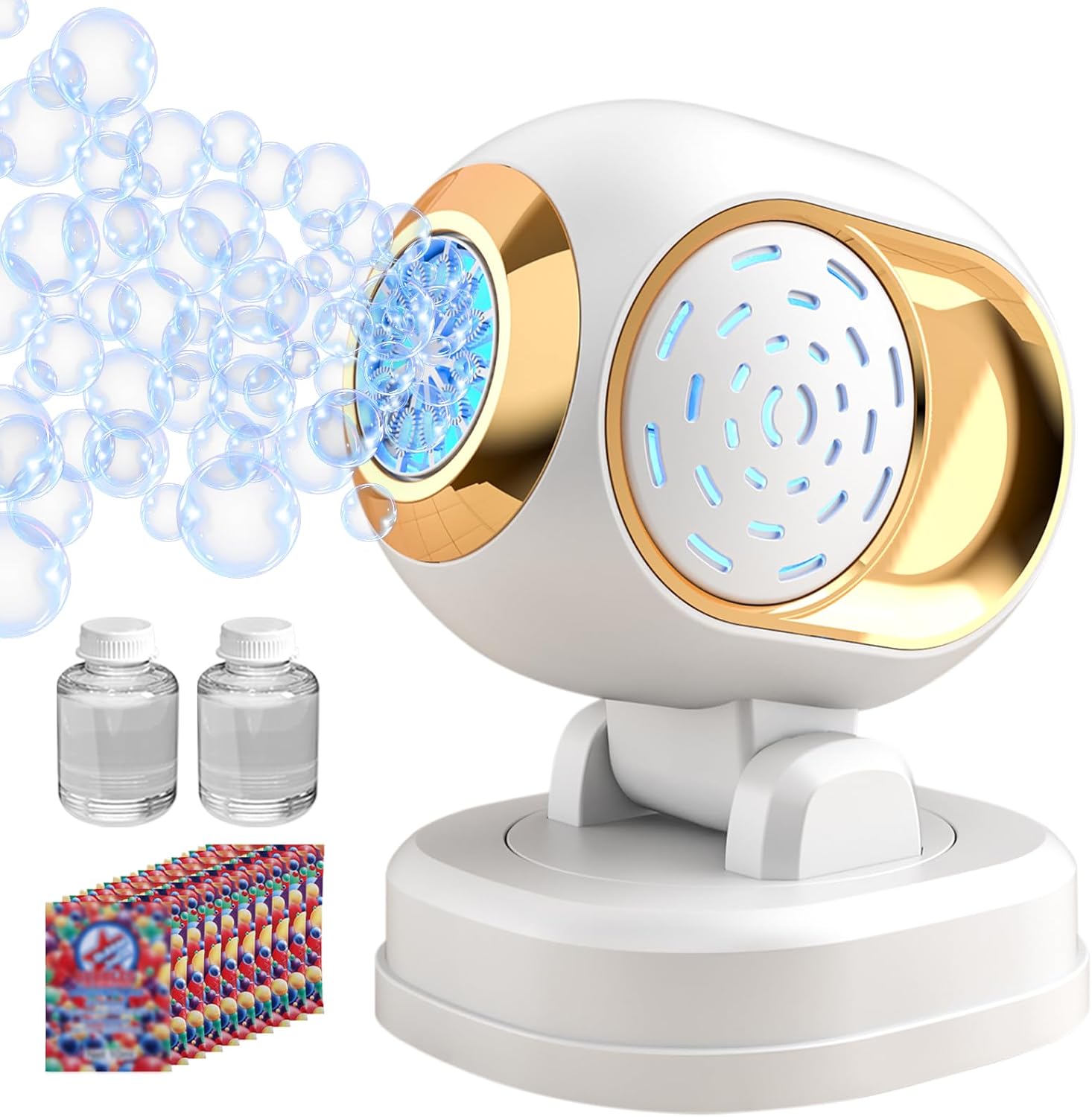 - BUBBLE MACHINE SET INCLUDES- Bubble Machine x 1, Bubble solution x 2bottle, Extra 20packs 10ml bubble solution(1 bottle bubbles solution=10ml solution + 50-100ml water),a small screwdriver x 1, Beautiful packaging box.
