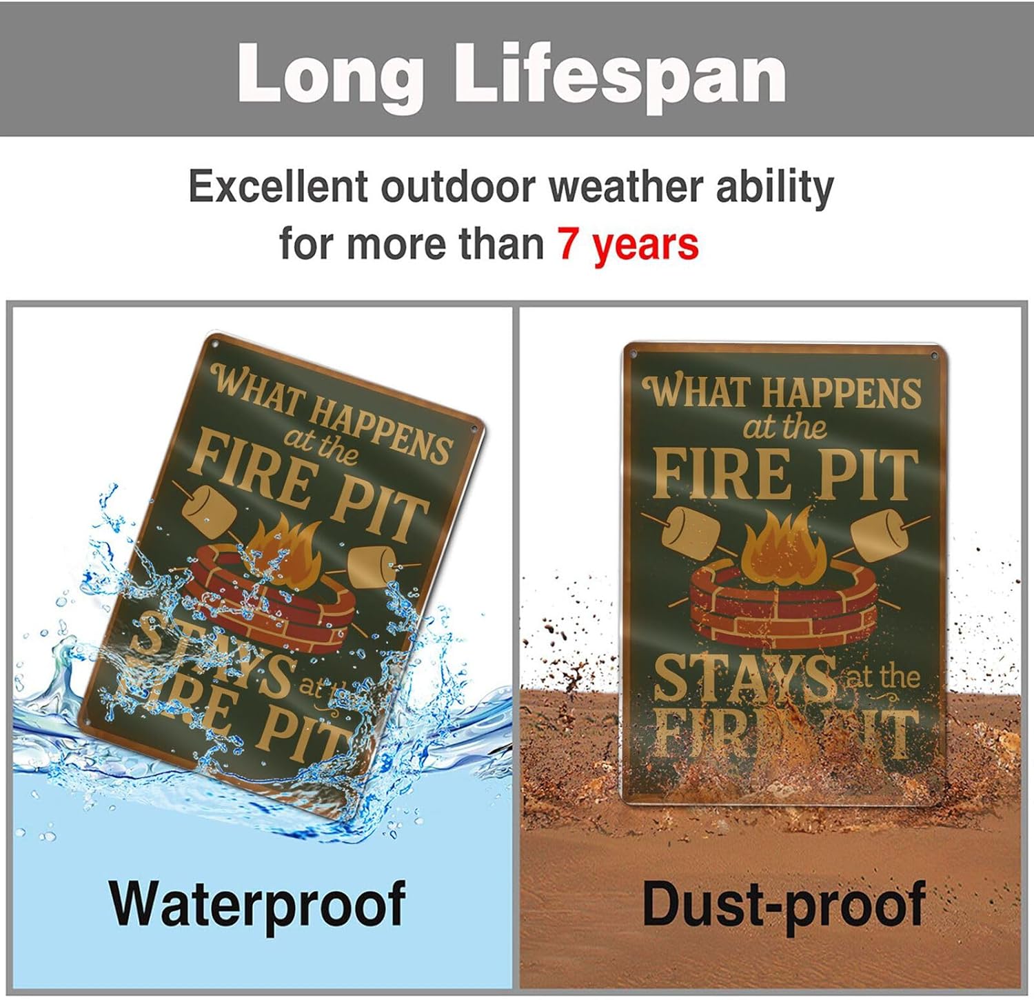 Funny Firepit Metal Sign - "What Happens at the Firepit" Outdoor Wall Decor for Patio, BBQ, Grill, or Campsite - Great Gift for Campers & Dads - 8" x 12"