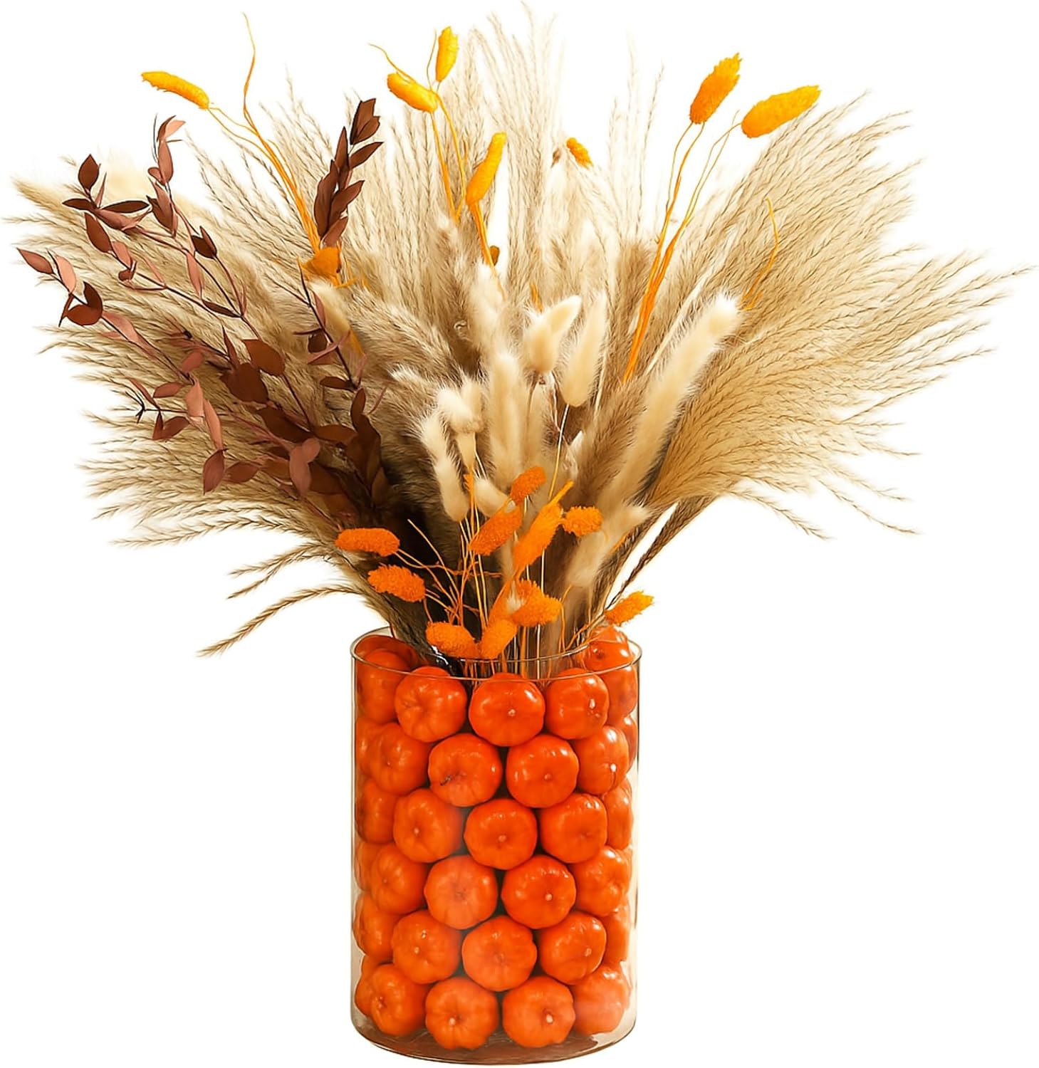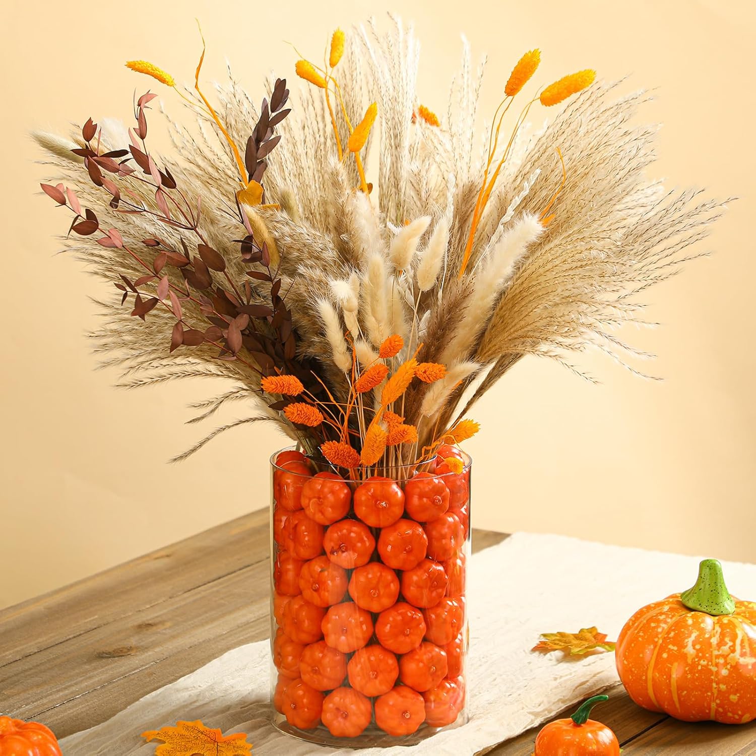 - Sufficient Quantity: you will receive 2 fall vases, a bouquet of boho fall mixed pampas grass, 60 cute foam mini pumpkins, the carefully matched colors add a natural and charm to your fall decor, making it a simple but not monotonous elegant embellishment