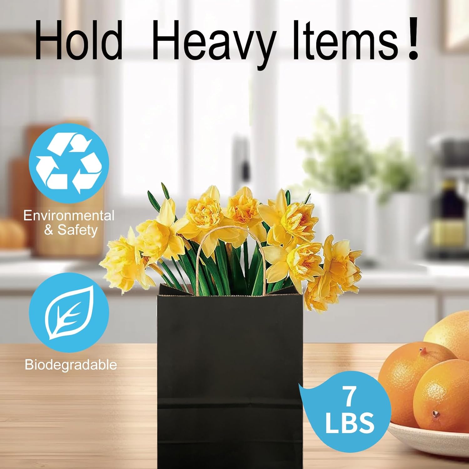 BAG BOX 50 Pack Small 5.9x3.1x8.25 Inch Black Kraft Paper Gift Bags with Handles for Bulk Shopping, Retail, Craft, Party Favors, Wedding, Grocery & Sacks