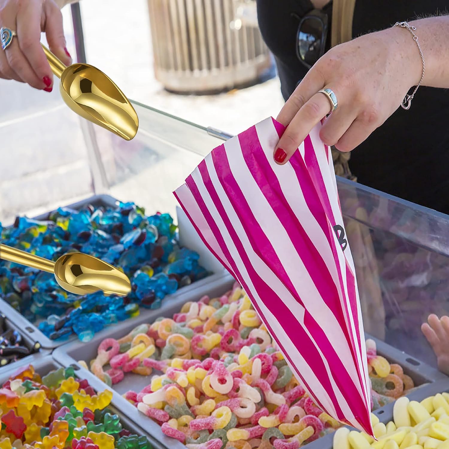 - 【Decorative & Versatile】The shiny gold scoop could match different styles of kitchens, Elegant appearance could be a embellishment to your kitchen, 3 piece set would meet your any needs, Scooping from ice cubes, candy, coffee bean to dry food, And even pet food, Great for a wide range of use in home