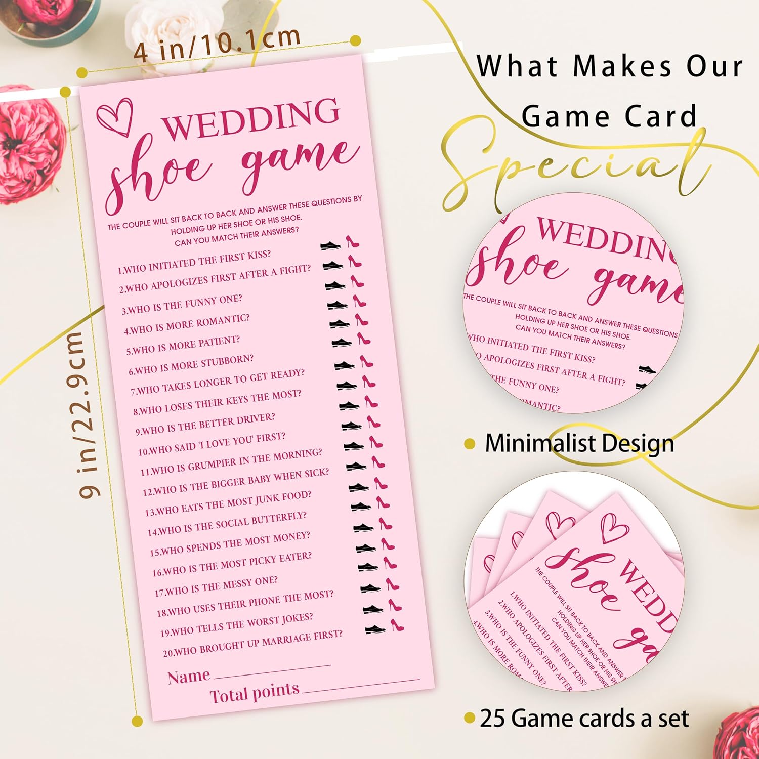 4x9 Inch Wedding Party Games, Bridal Shower Cards, 25 Pink Bridal Shower Games for Wedding Reception, Bachelorette, Engagement Party, Minimalist Guest Interaction Activity Cards-A10