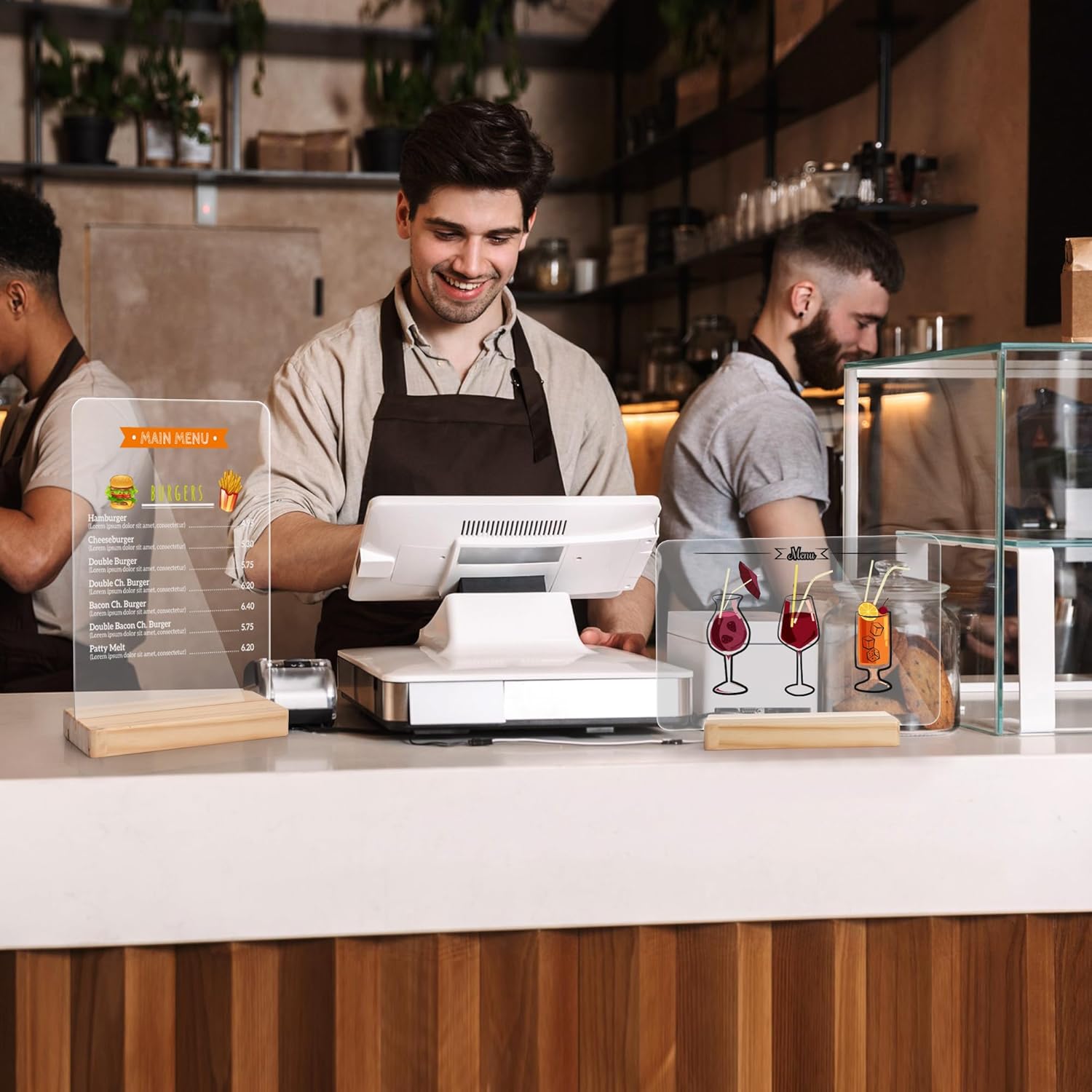 SELEAD Acrylic Clear Board Bar Sign - 2 Pack 8x12 Inch DIY Words Sign Board with Wooden Stand, Tabletop Double-Sided Menu Message Note Board for Business, Wedding, Events