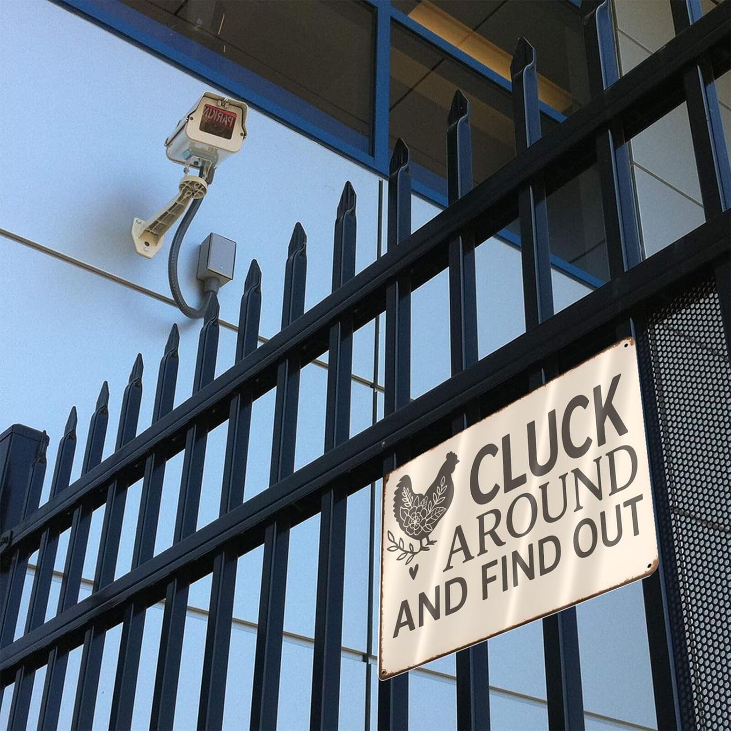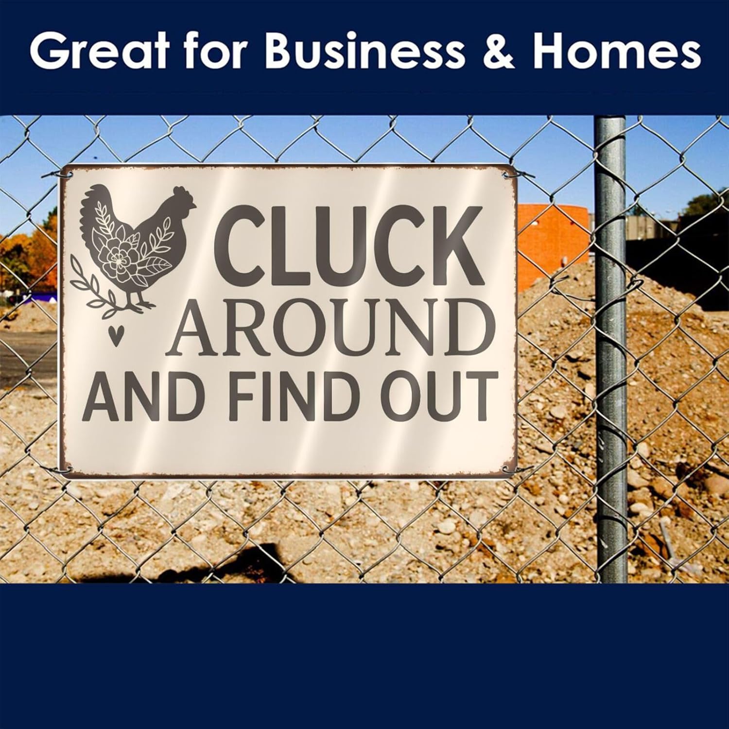 Funny Chicken Tin Sign - "Cluck Around and Find Out" Farmhouse Wall Decor for Kitchen, Coop, Garden - 8x12 inch Rustic Metal Gift