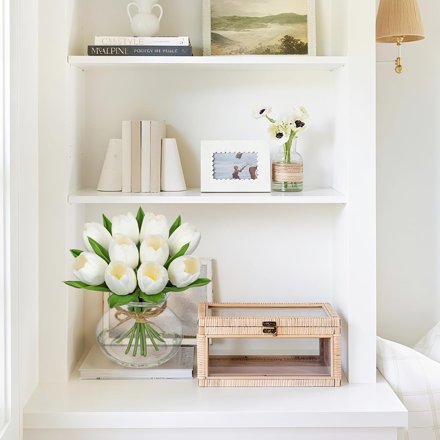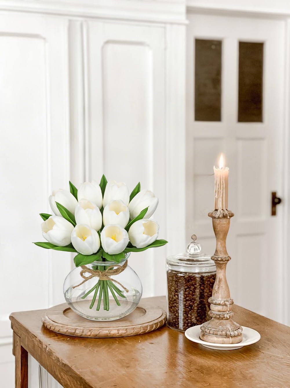 - Elegant White Blooms: Lifelike white tulip bouquet centerpiece adds timeless charm to any space. Perfect for farmhouse kitchen decor, modern coffee table styling, or as wedding centerpieces—these artificial flowers arrangement look fresh year-round without wilting