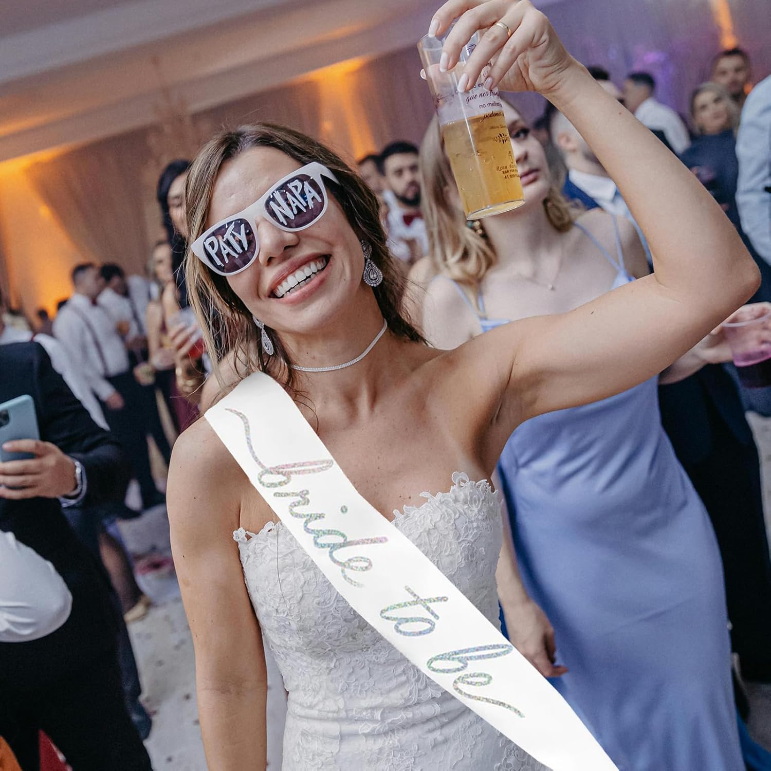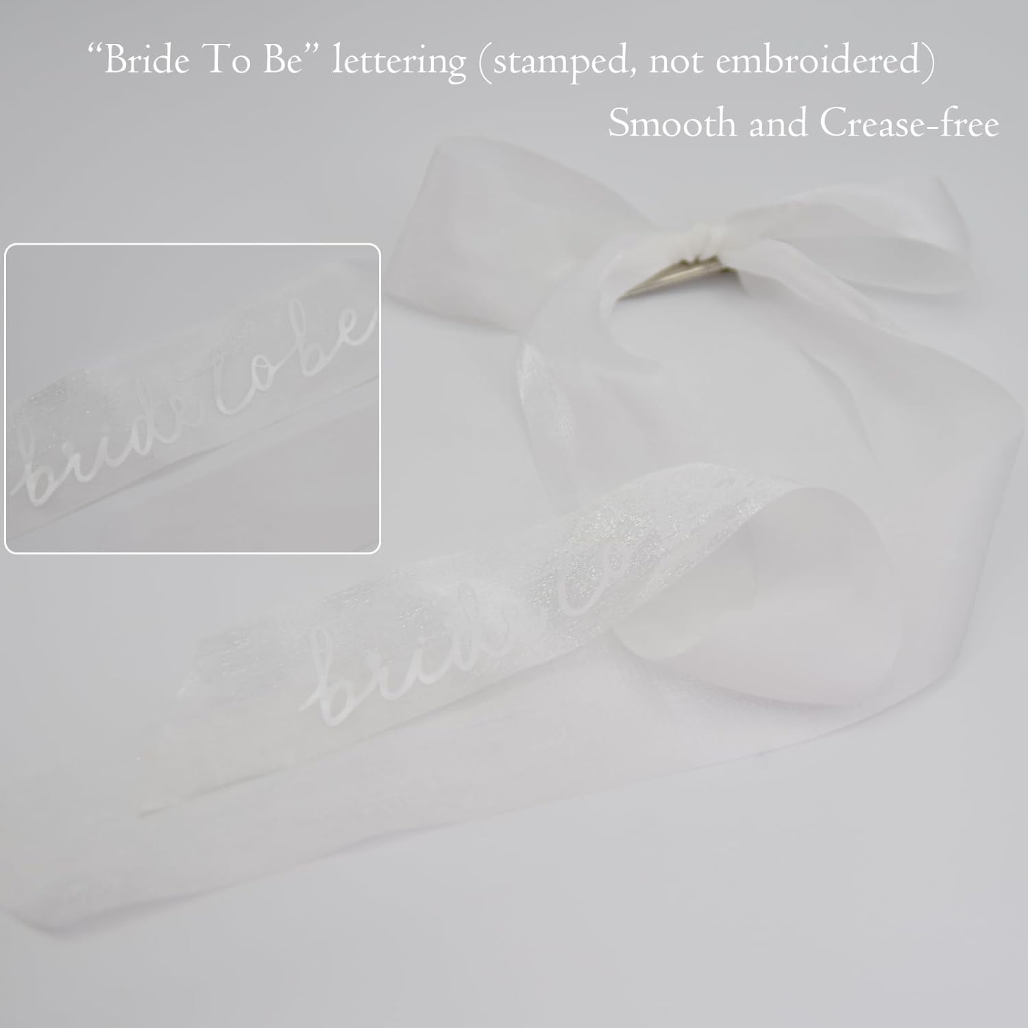 - Elegant White Satin Bride Sash: Made from soft satin with shimmering “Bride to Be” foil lettering, this 62" x 3.7" sash is one size fits most and adds elegant sparkle to any bridal look—perfect for showers, bachelorette parties, and weddings