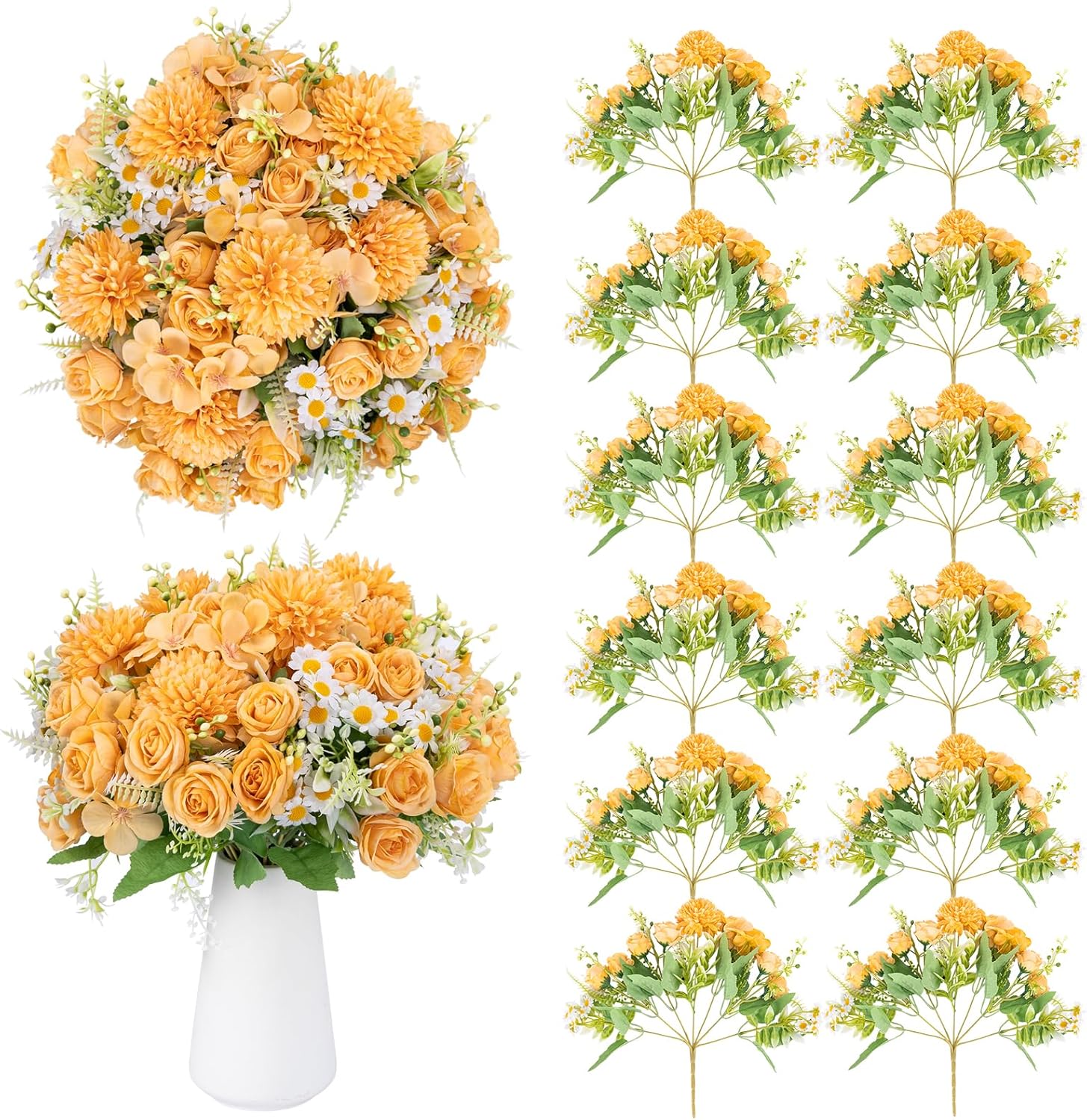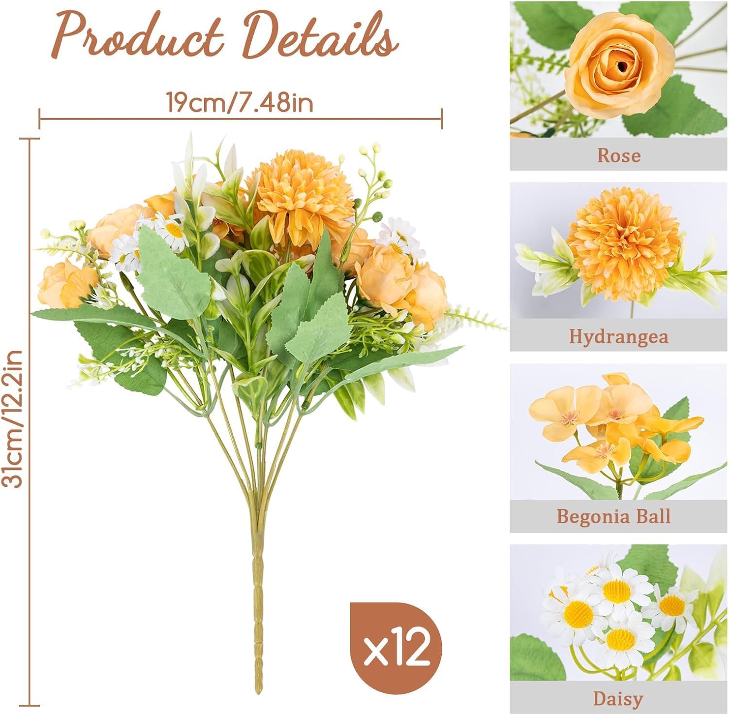 12 Packs Peonies Artificial Flowers,Silk Artificial Peonies Flowers Fake Peony Faux Floral Arrangements Bouquet for Centerpiece Table Wedding Party Home Decor Fall